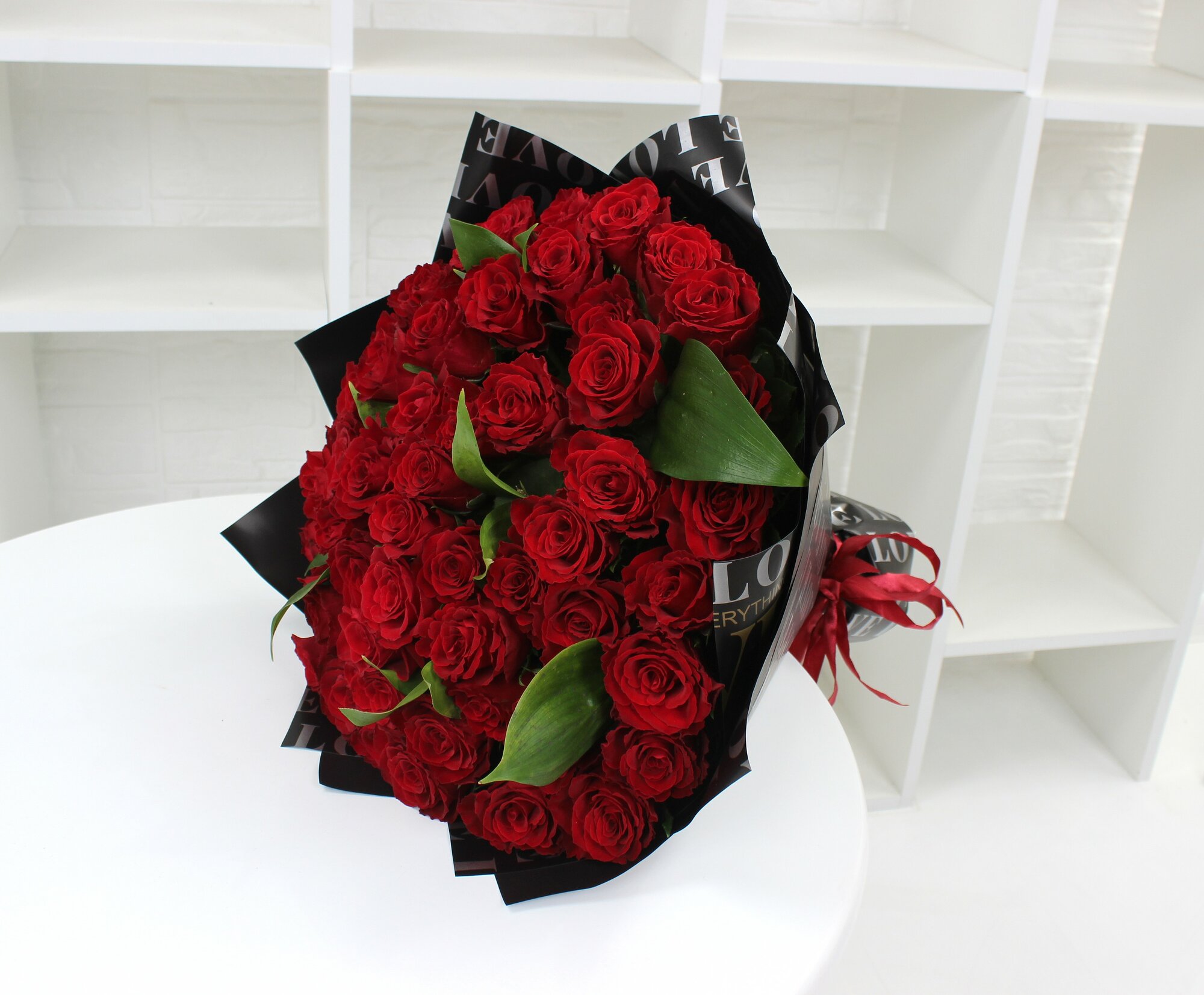 Купить 51 красная роза 40см с зеленью