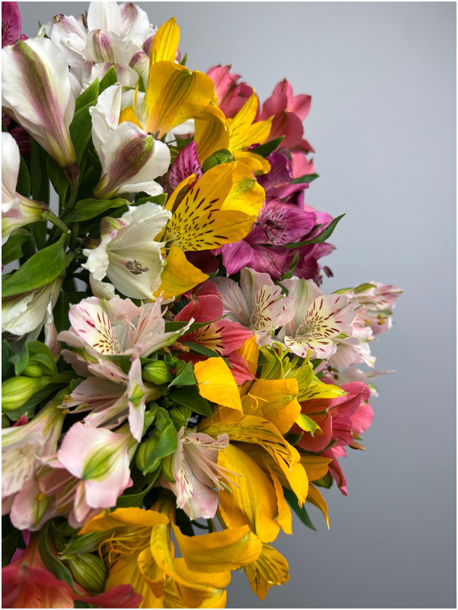 Букет из альстромерии микс, 15 штук, высота 60 см+, с атласным бантом. интересное:
