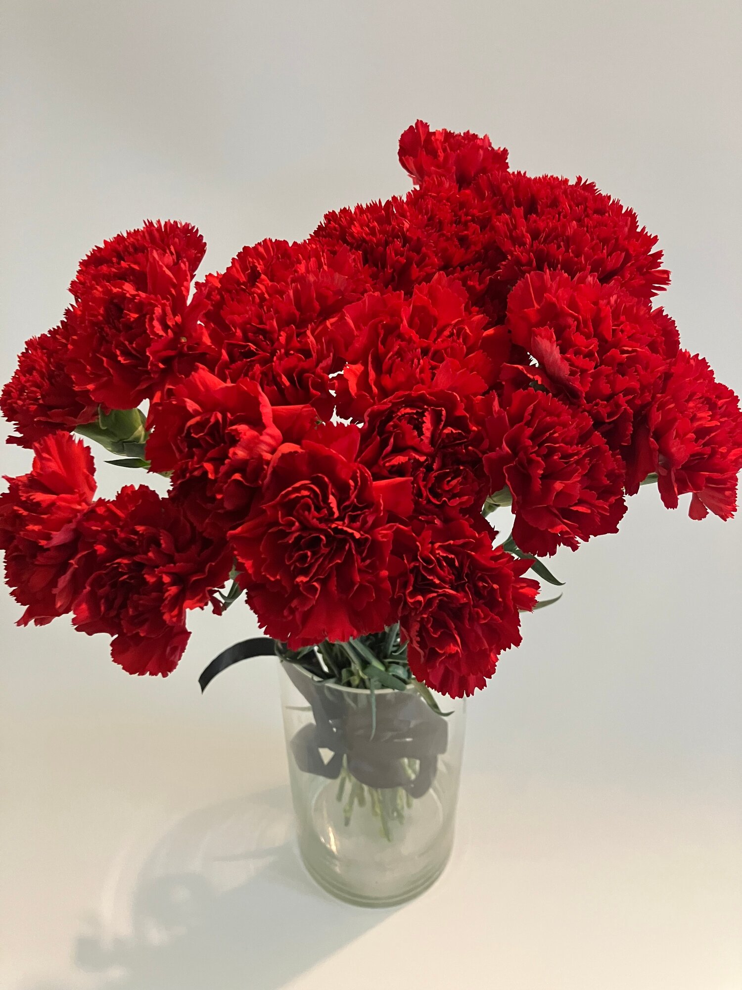 Купить Букет красных гвоздик, 25 штук, 55 см+, под чёрный , атласный бант.