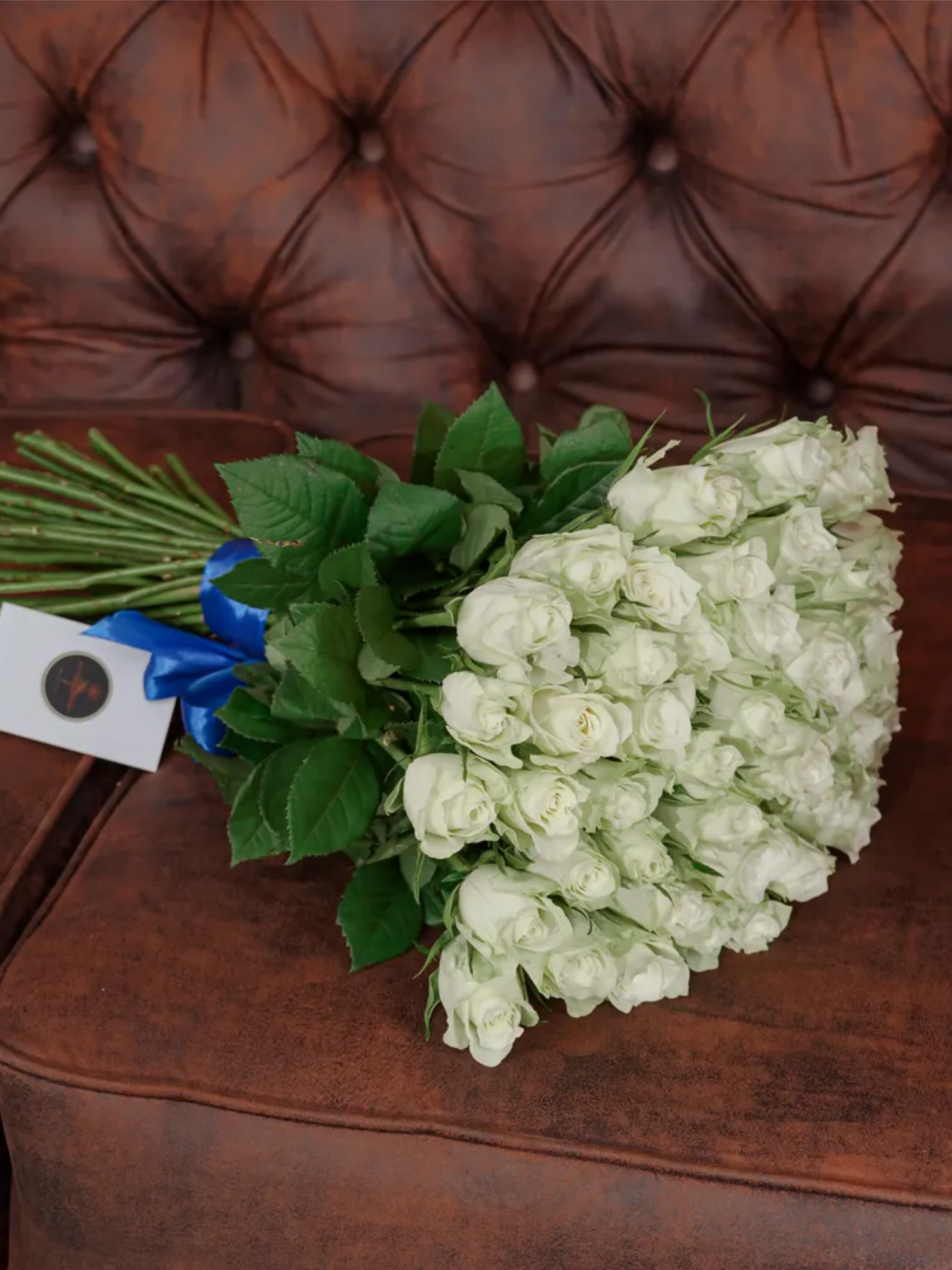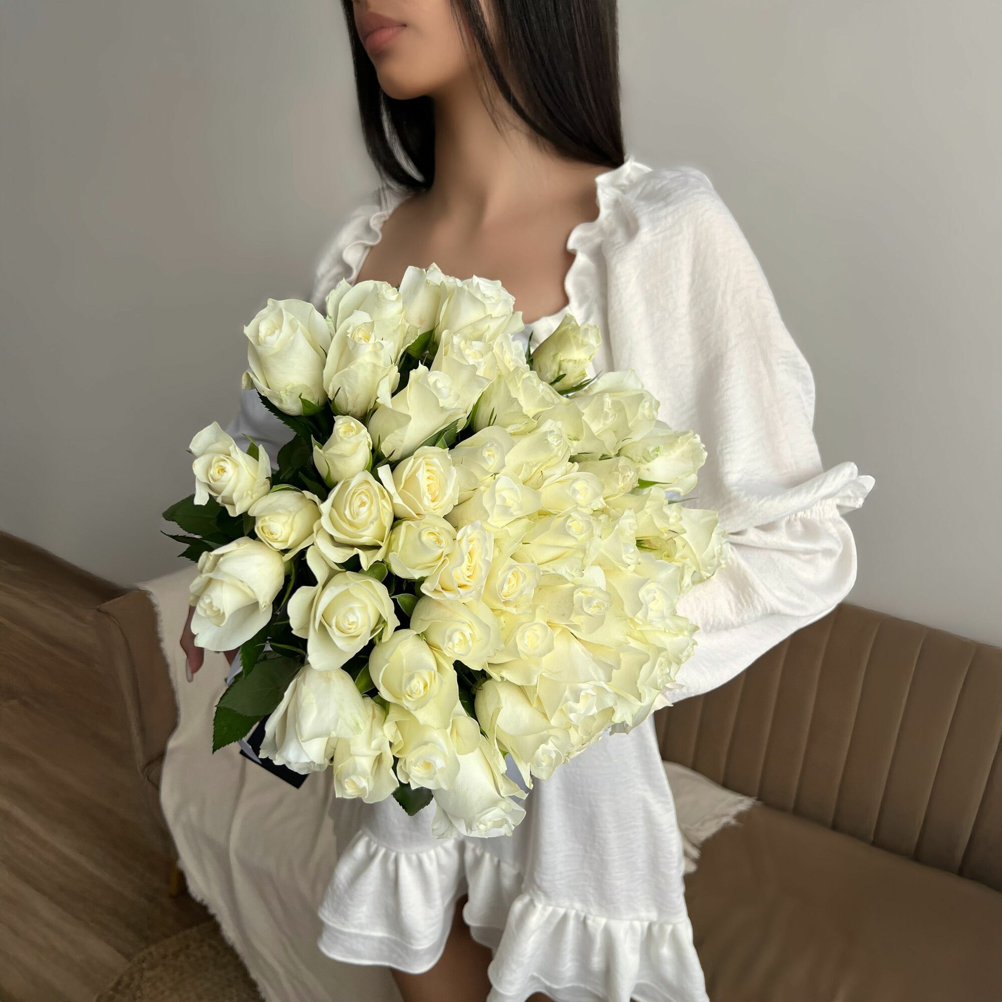 Купить Букет живых цветов из Белых роз 51 шт. высота 42 см. Luxus Flowers