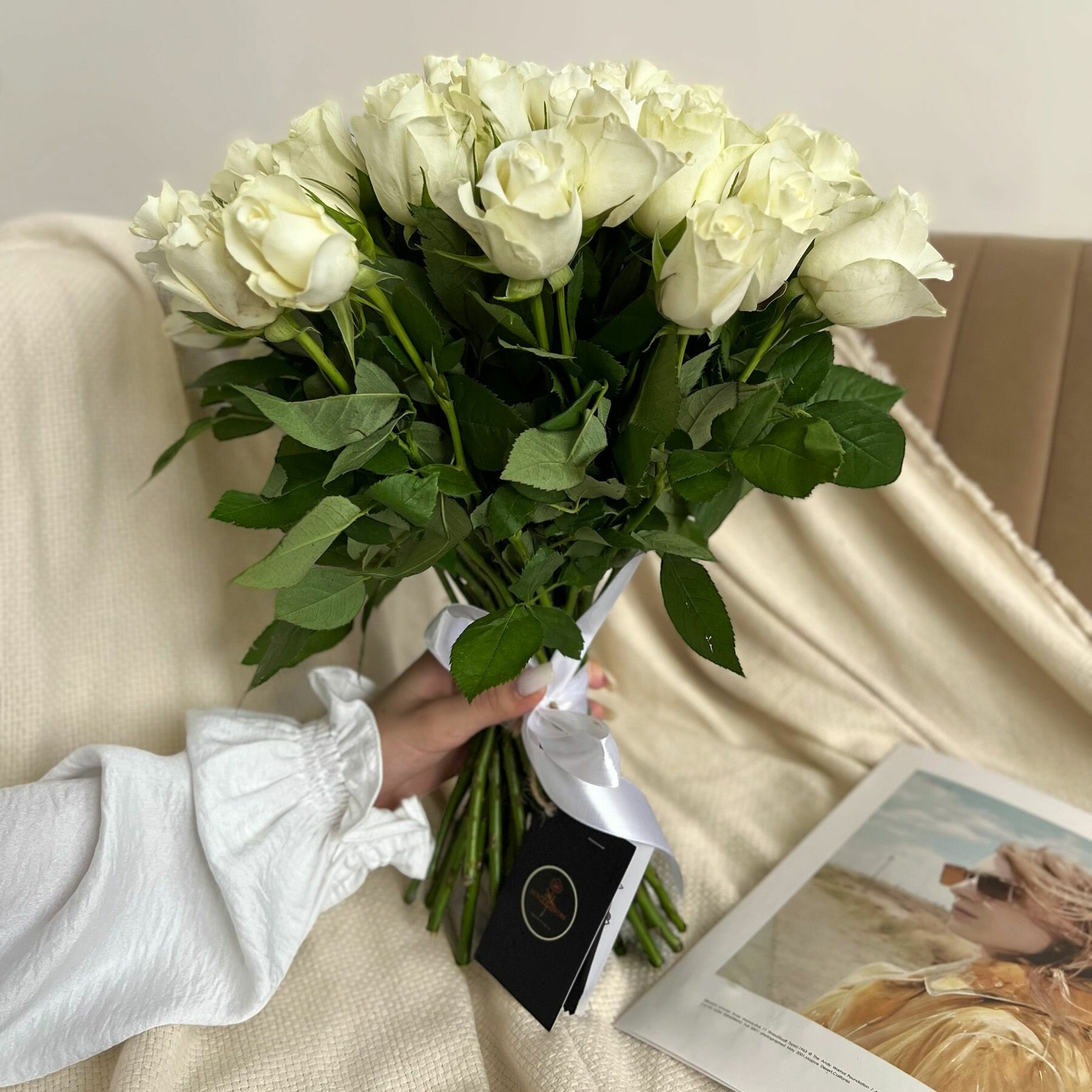 Букет живых цветов из Белых роз 25 шт. высота 42 см. Luxus Flowers