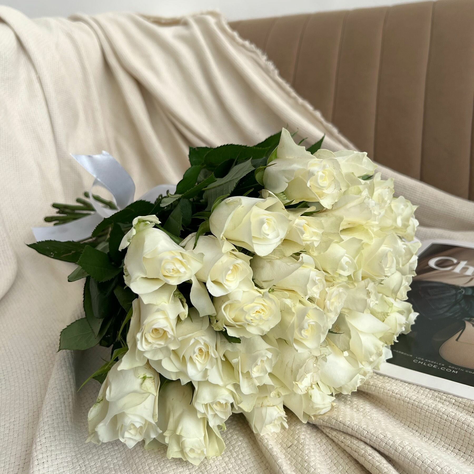 Букет живых цветов из Белых роз 51 шт. высота 42 см. Luxus Flowers
