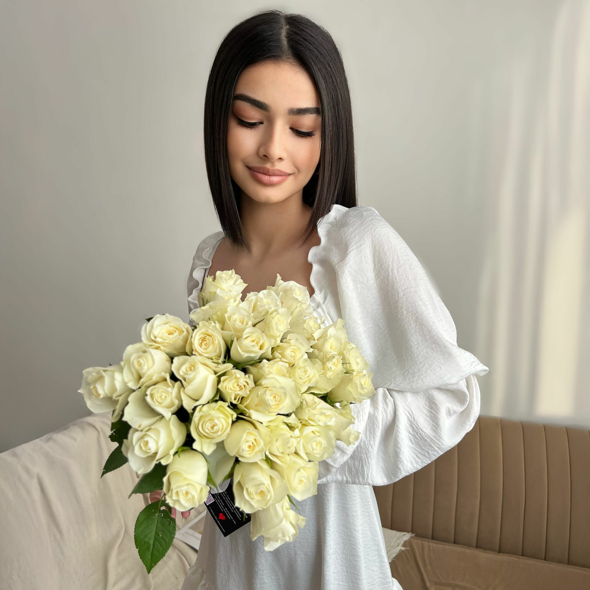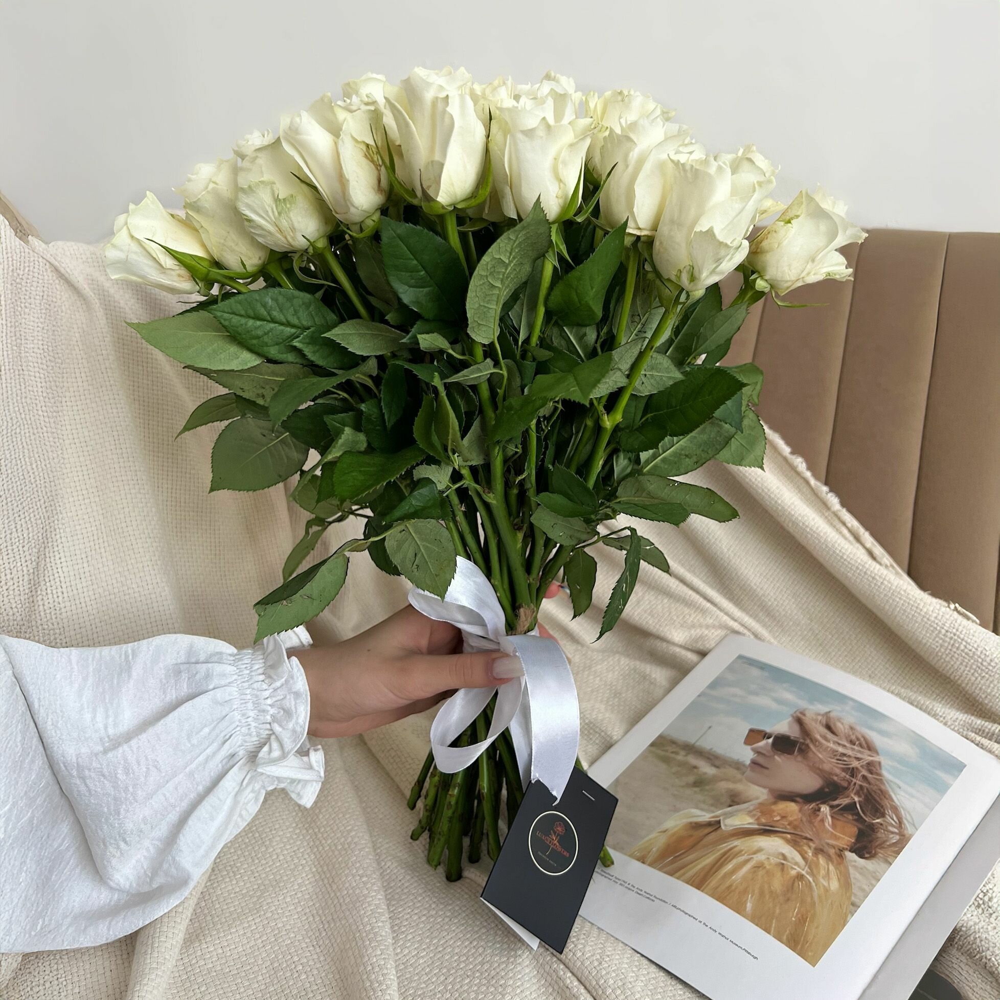 Купить Букет живых цветов из Белых роз 35 шт. высота 42 см. Luxus Flowers