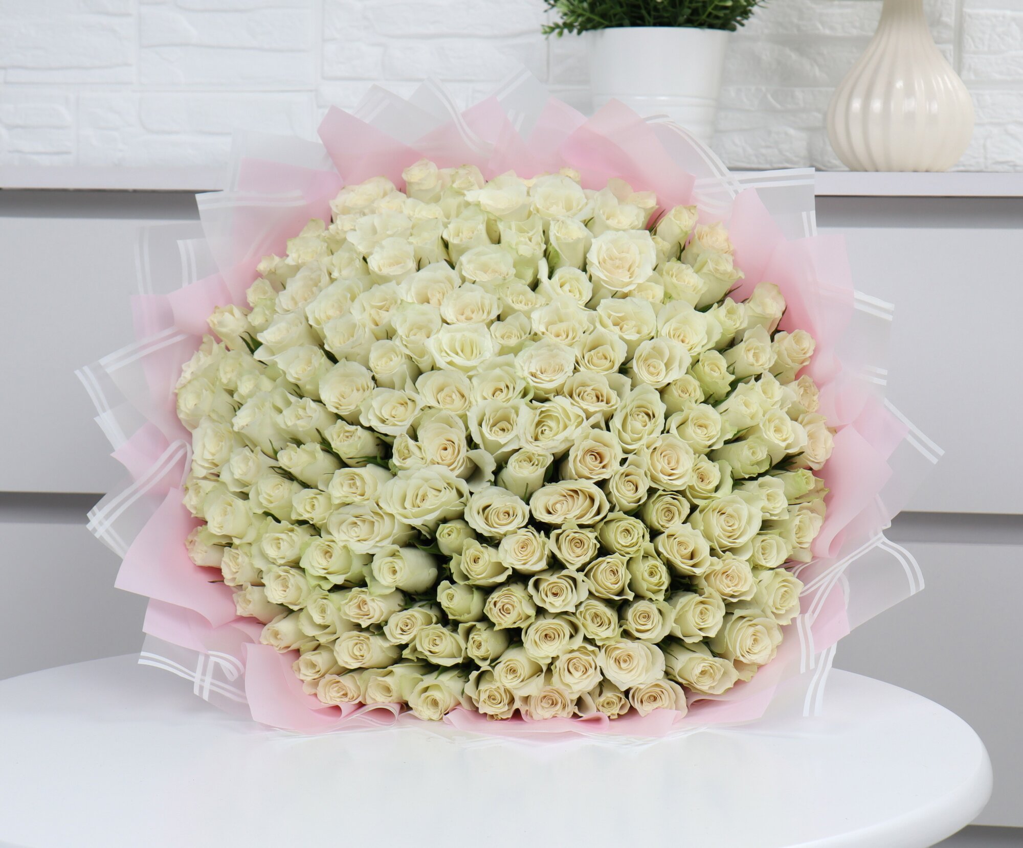Розы в крафт коробке 11 шт 50 см белые - Просто роза ру