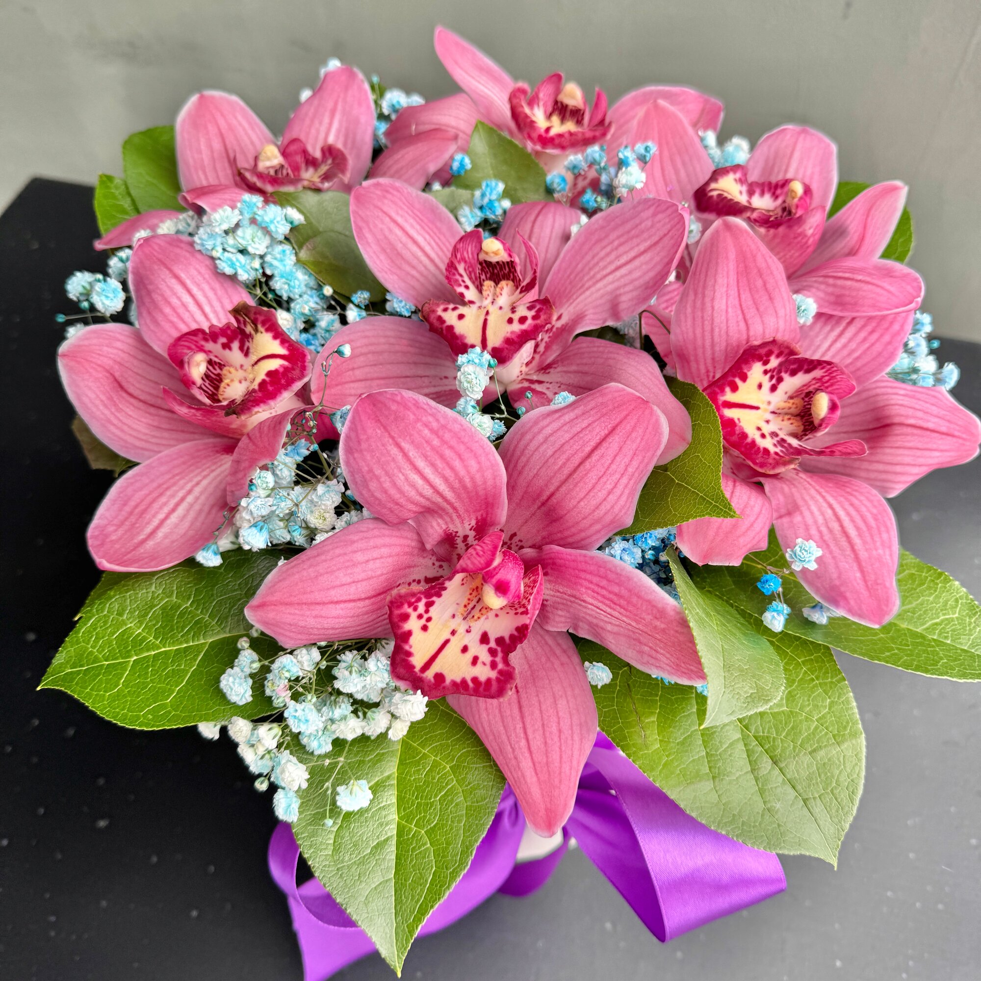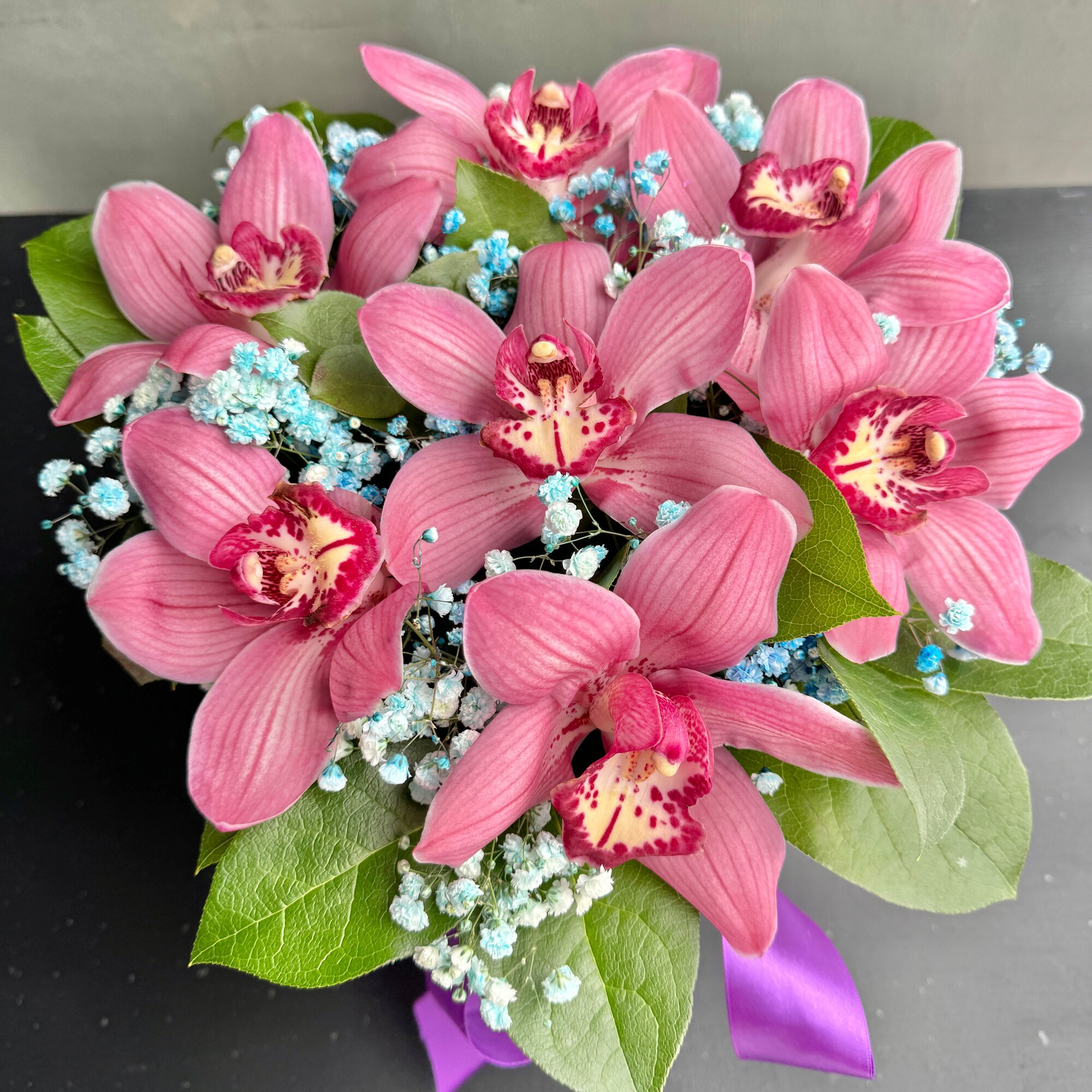 Купить Орхидеи цимбидиум 7 шт розовые и гипсофила в коробке dek арт. 13579 st nhi npo skr ak