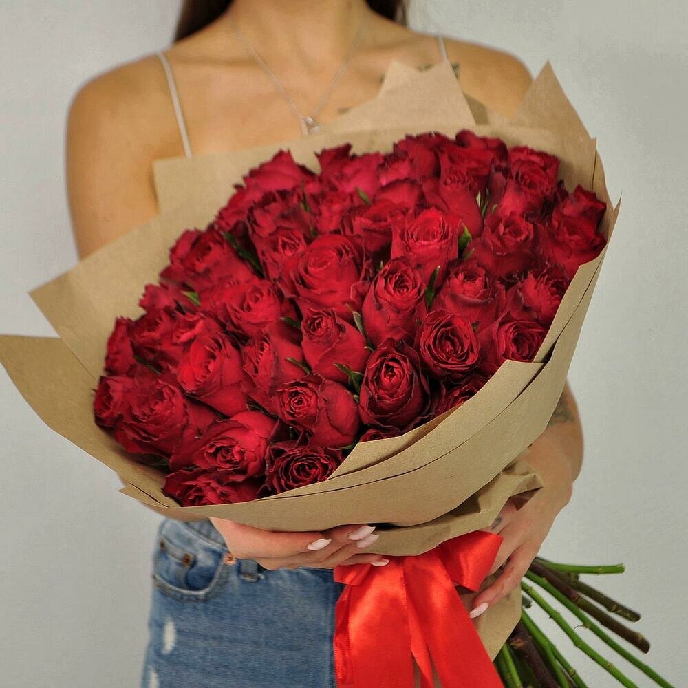 Купить Букет 51 красная роза, Королевство праздника "Африканская Страсть", монобукет, роза, 51 цветок, высота 40см
