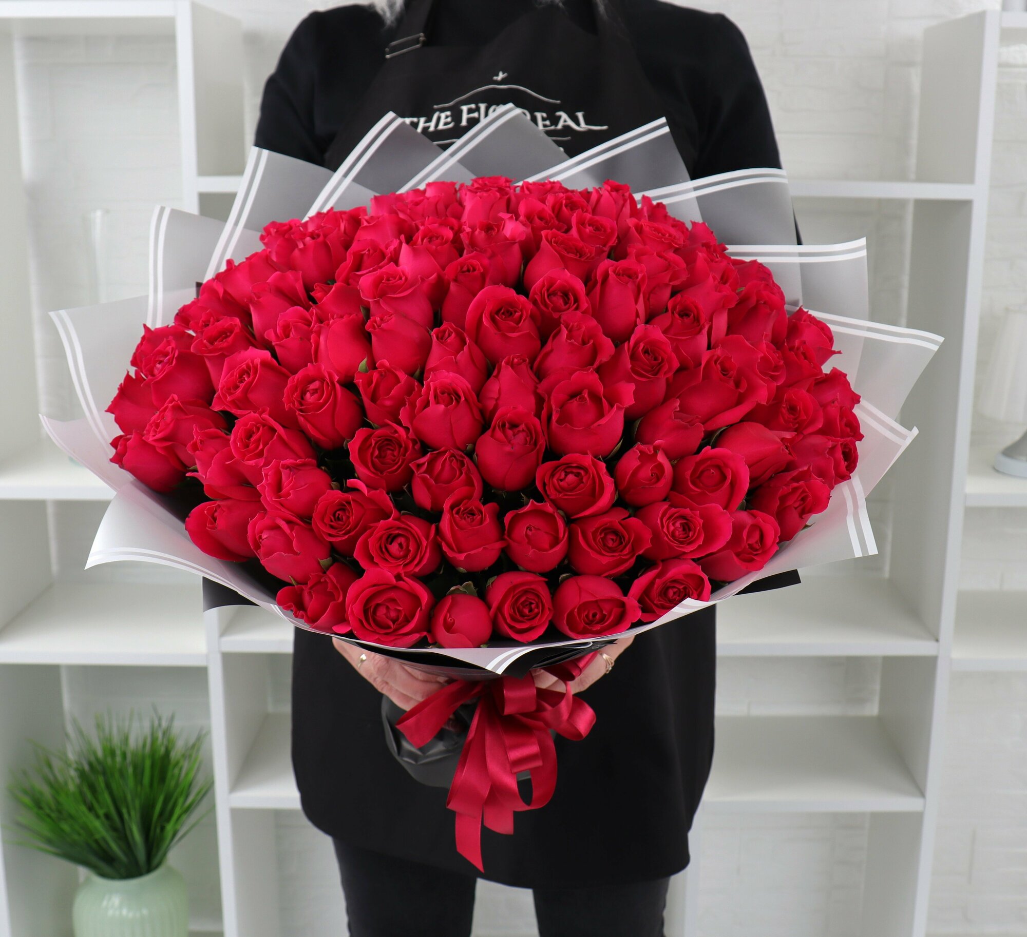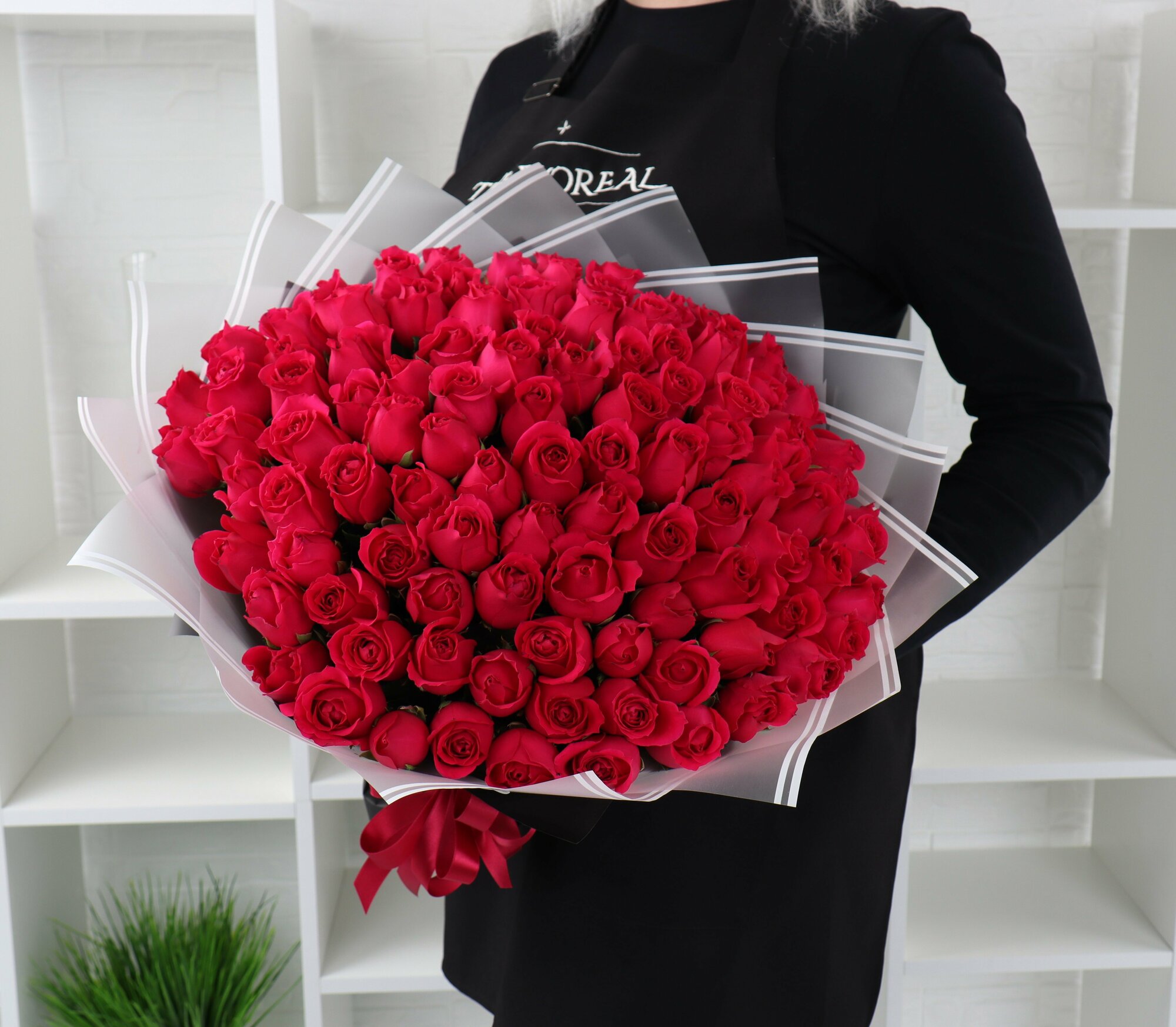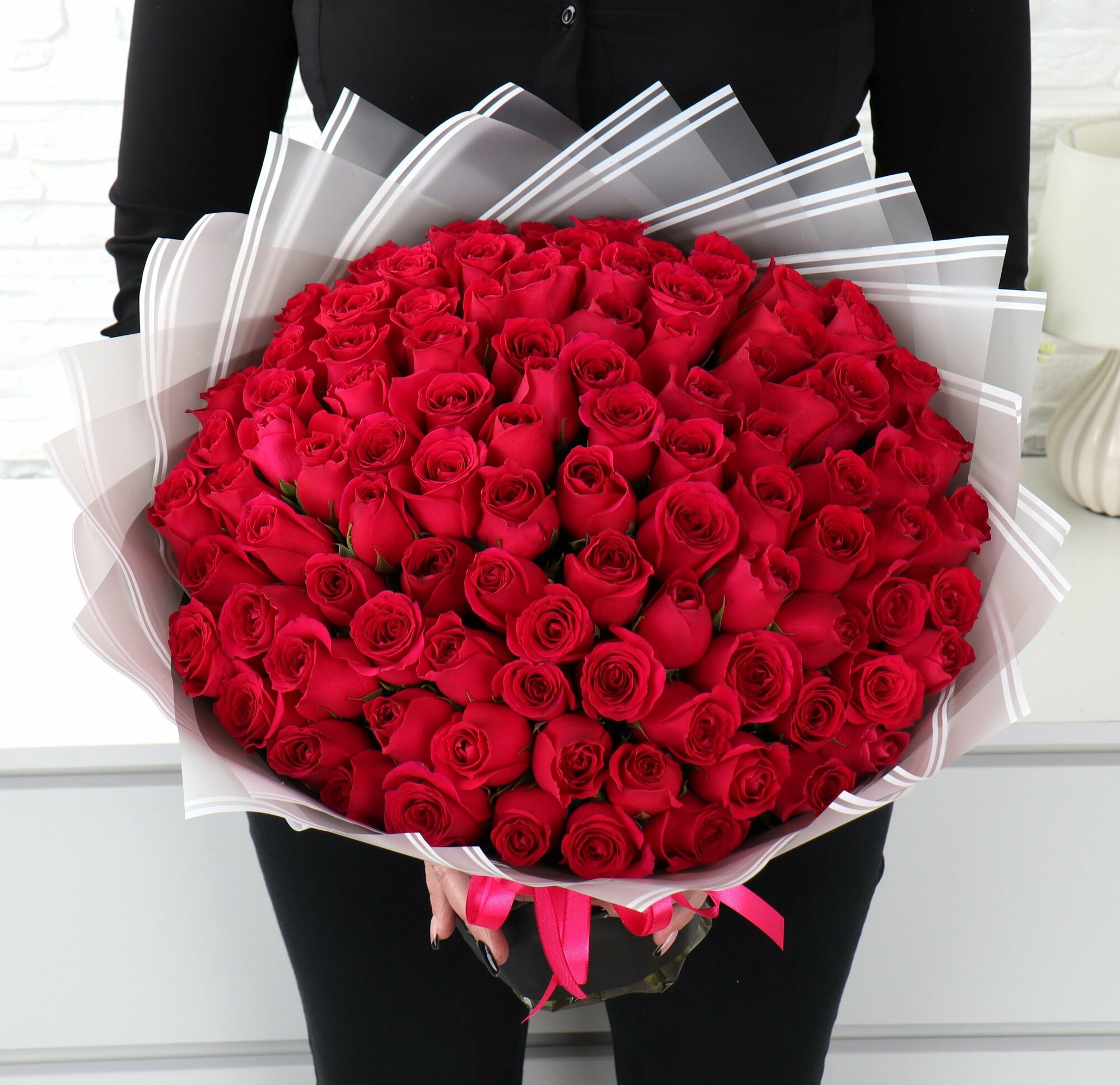 Купить 101 малиновая роза 40см