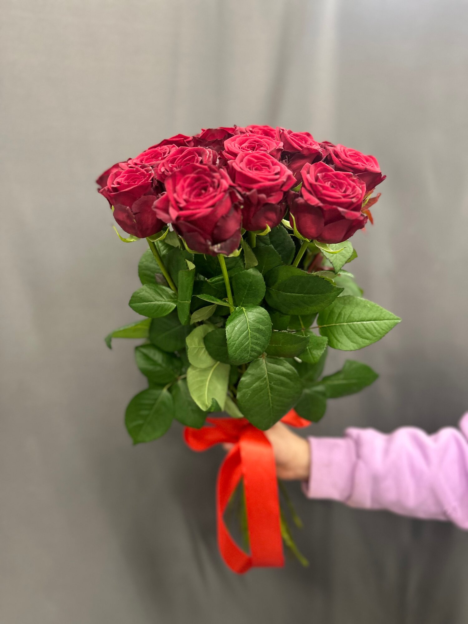 Живые цветы букет из красных роз , сорт "Ред Наоми", 19 шт, высота 60см, под ленту интересное: