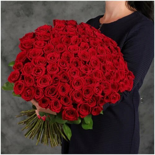 Живые цветы букет из красных роз 60см. 101 шт. под ленту. Сорт "Ред Наоми"