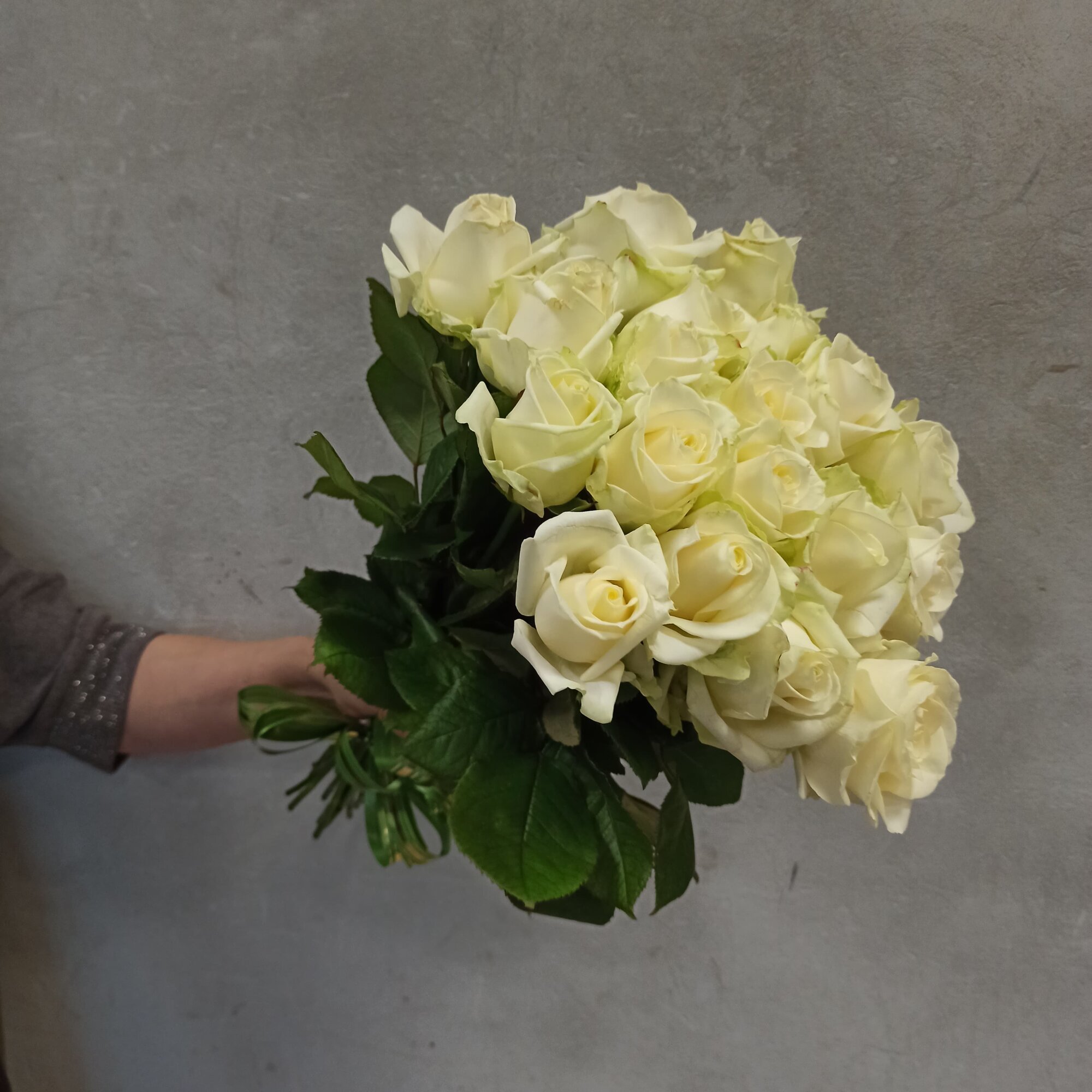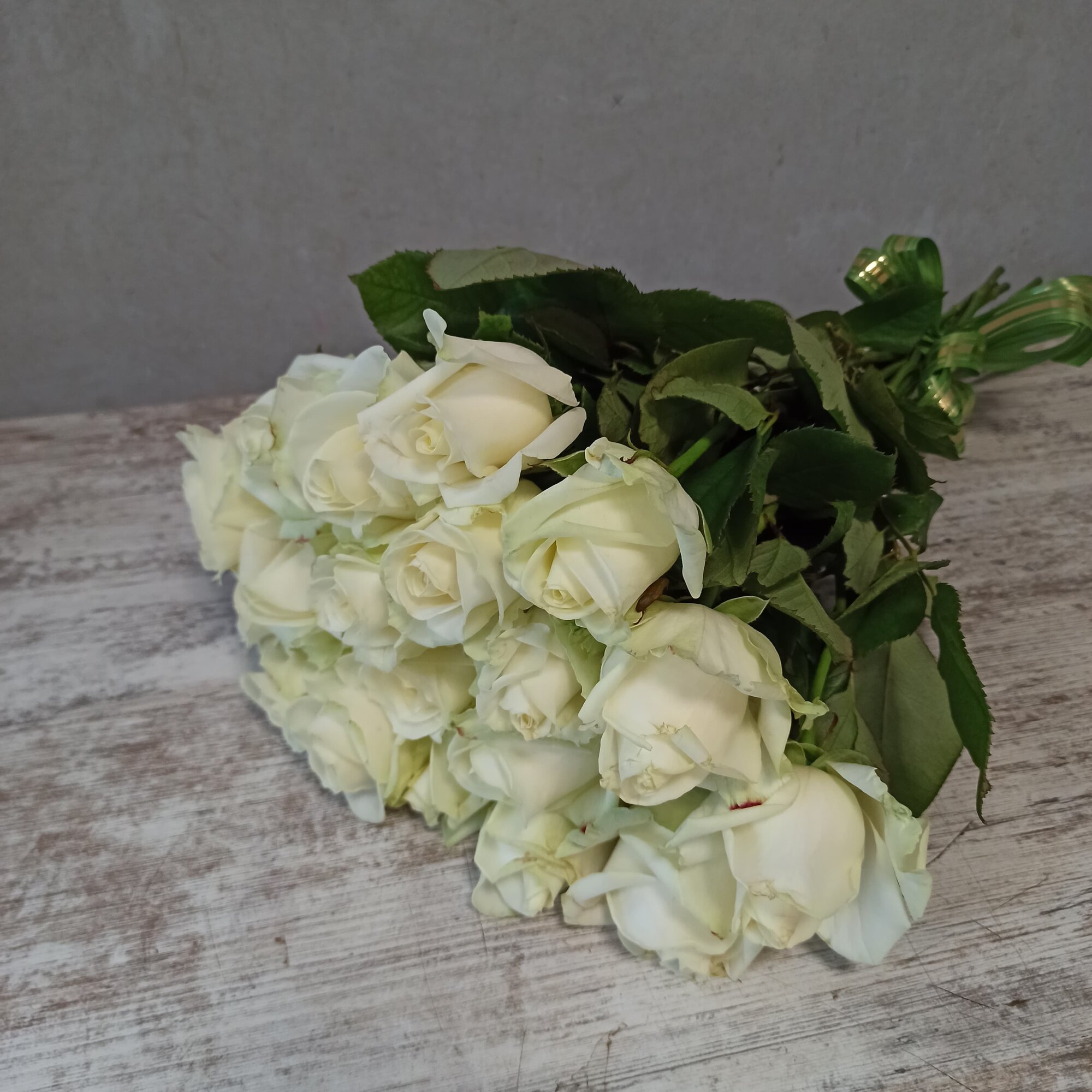 Купить Живые цветы букет из 19 белых роз высотой 60 см "Небесная палитра", сорт - "Аваланж", Rurose
