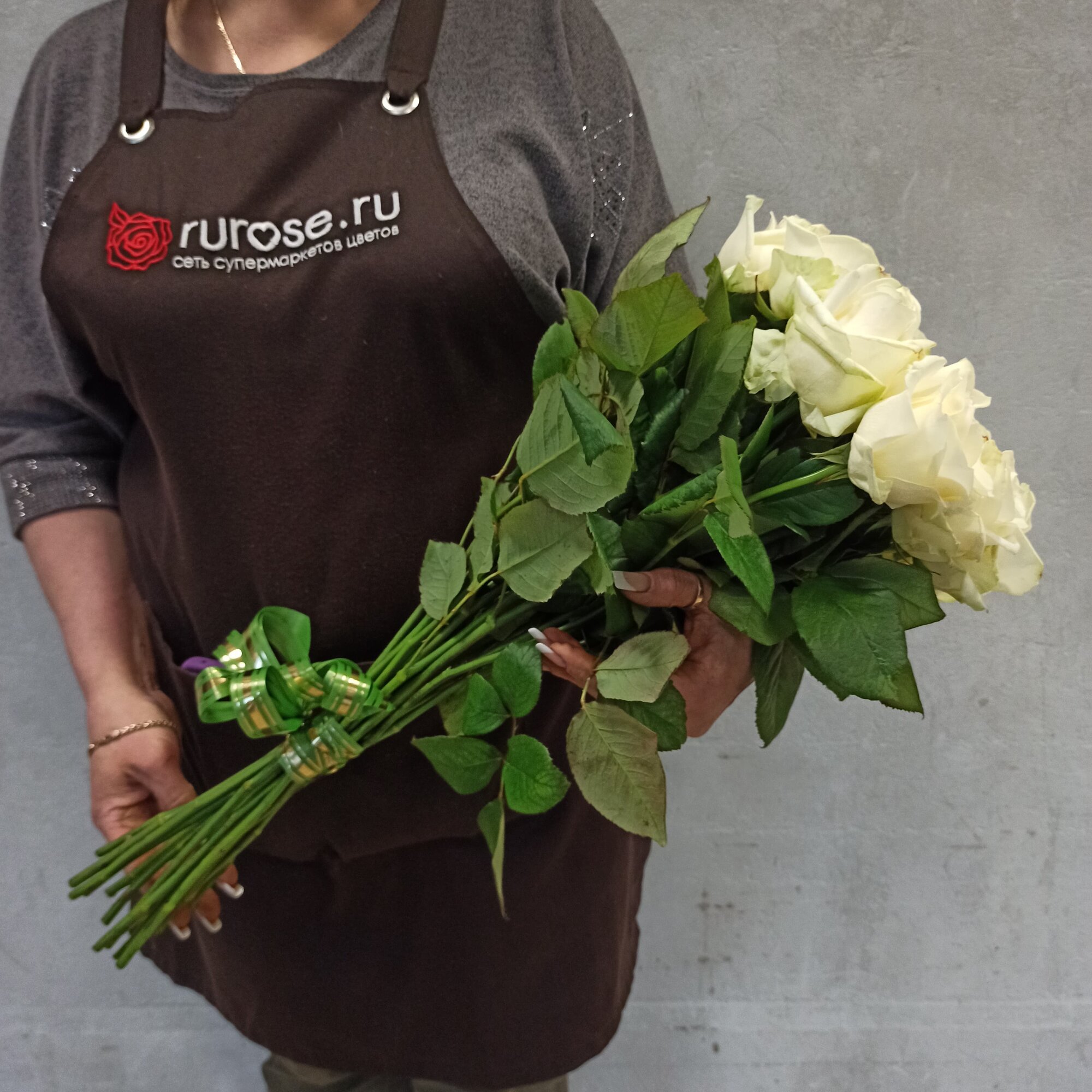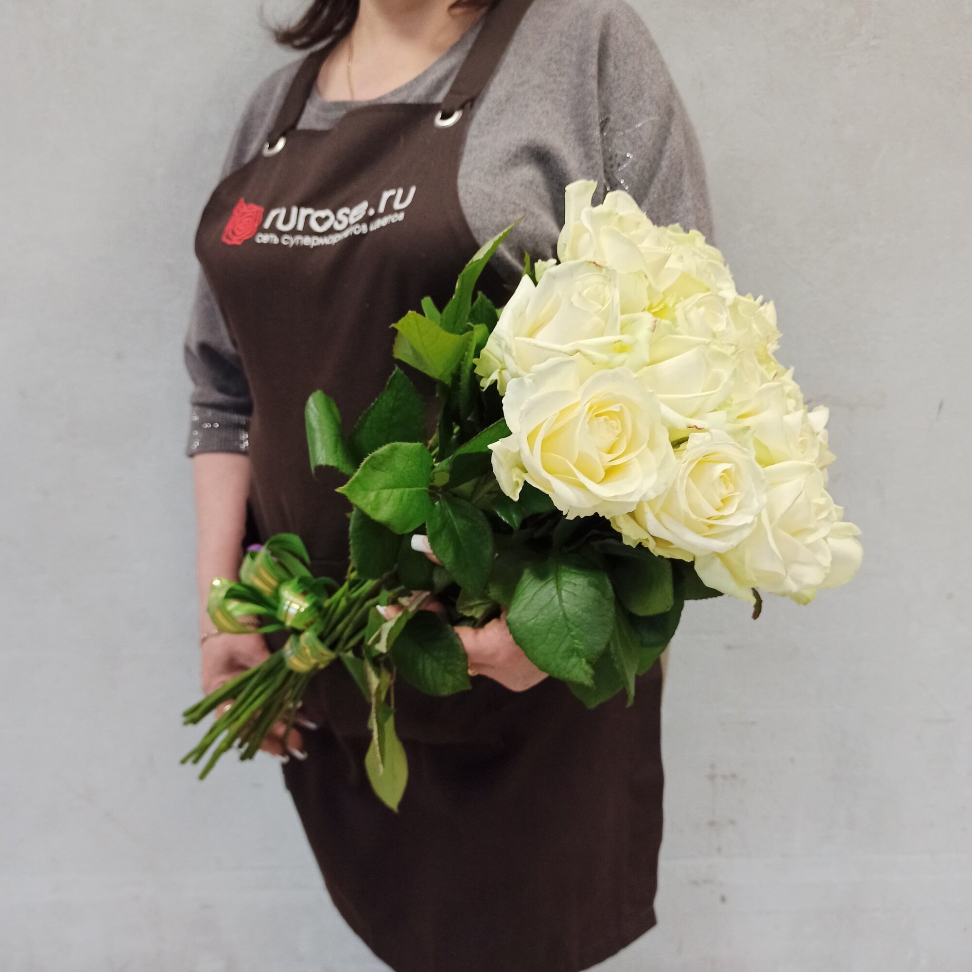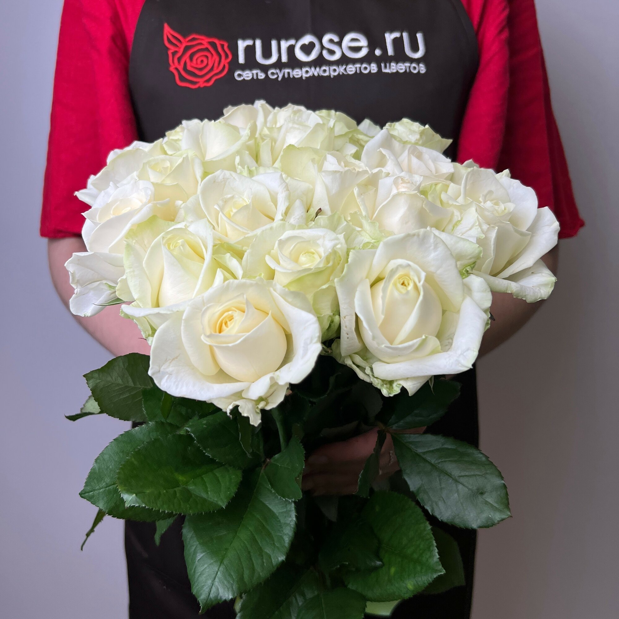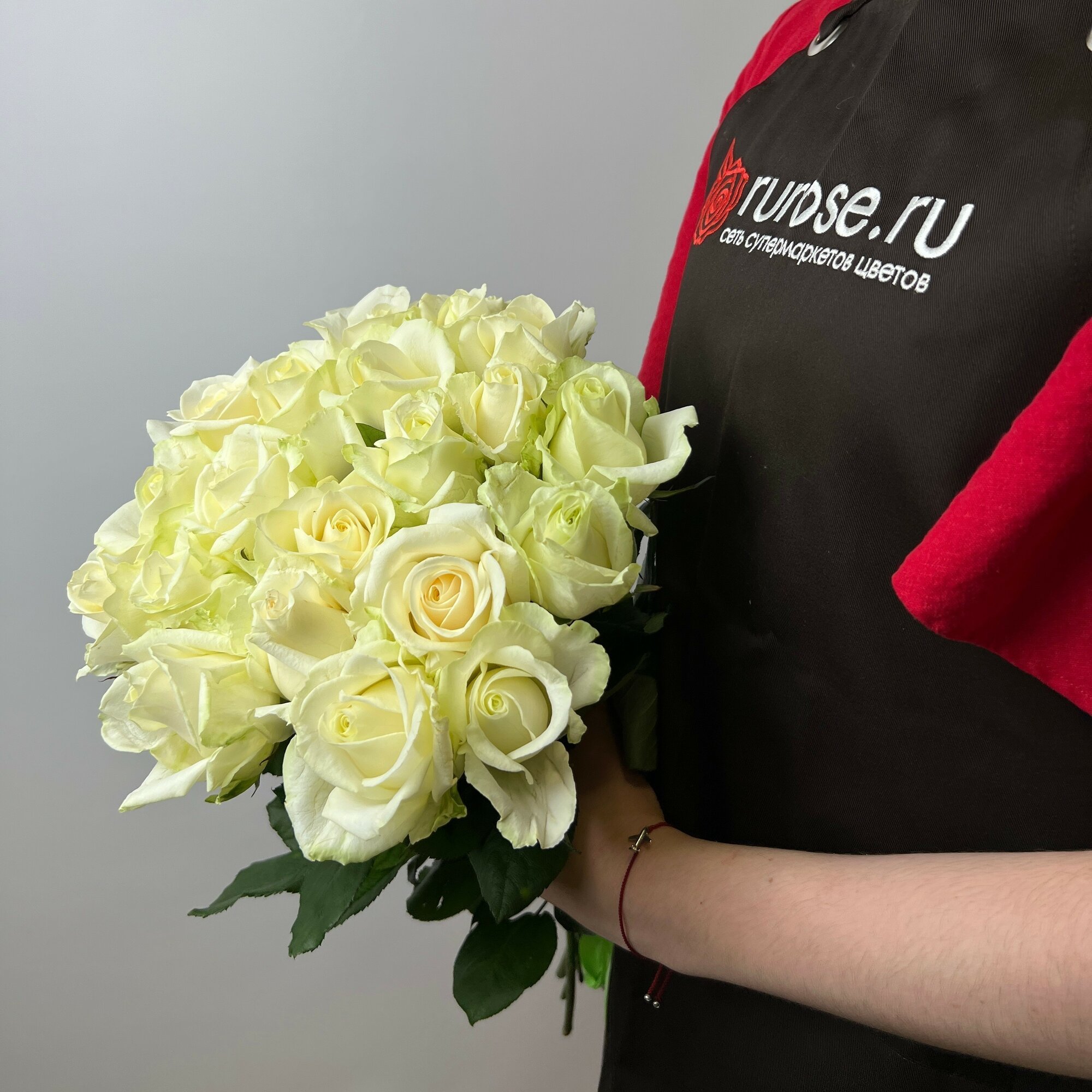 Живые цветы букет роз 31 шт. 60 см. белый, сорт "Аваланж", Rurose