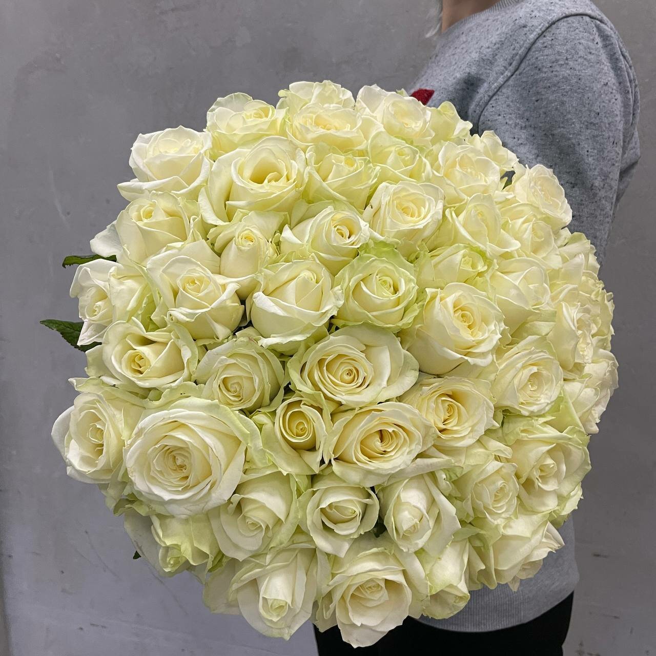 Живые цветы букет роз 71 шт. 60 см. белый, сорт "Аваланж"