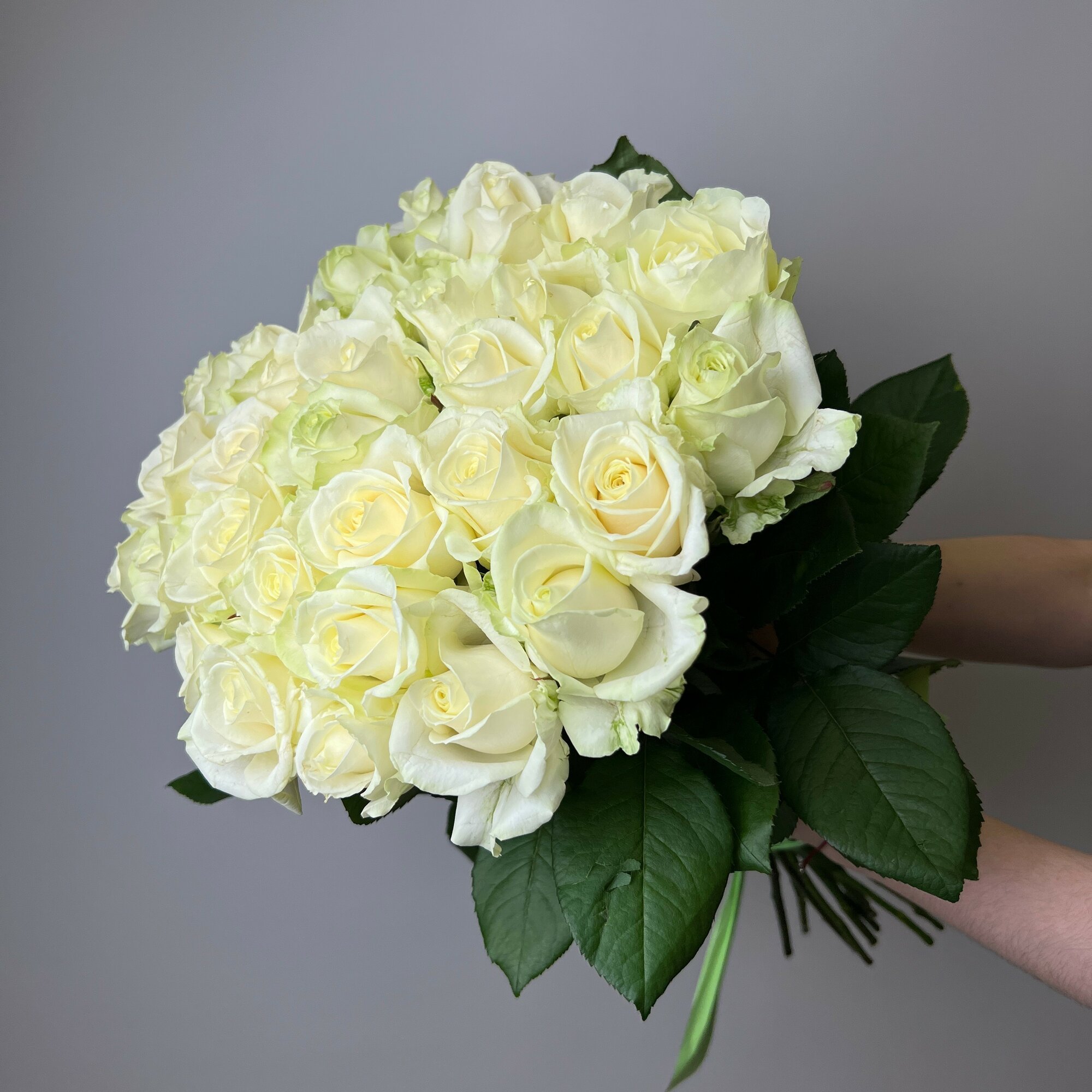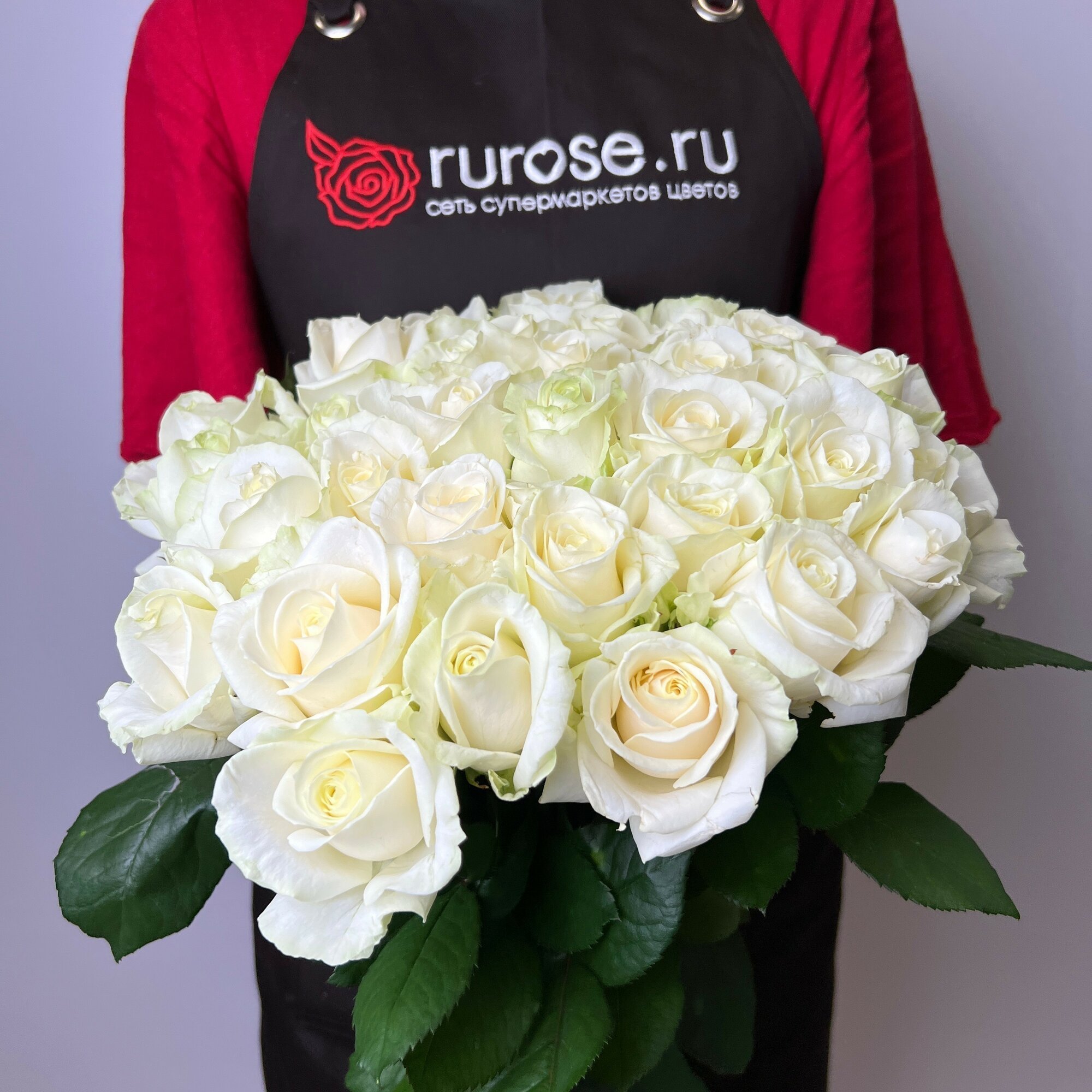 Купить Живые цветы букет роз 31 шт. 60 см. белый, сорт "Аваланж", Rurose
