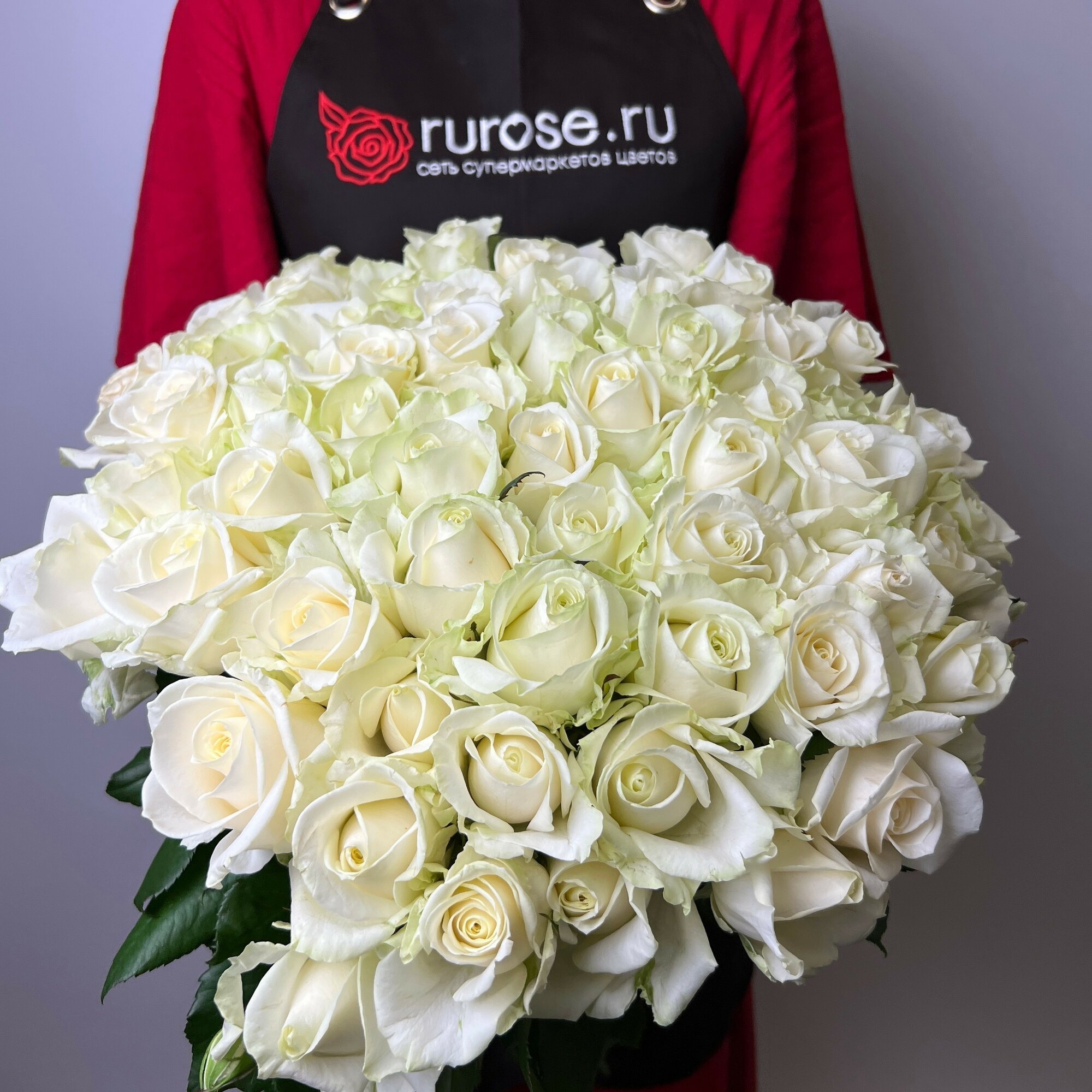 Живые цветы букет роз 31 шт. 60 см. белый, сорт "Аваланж", Rurose