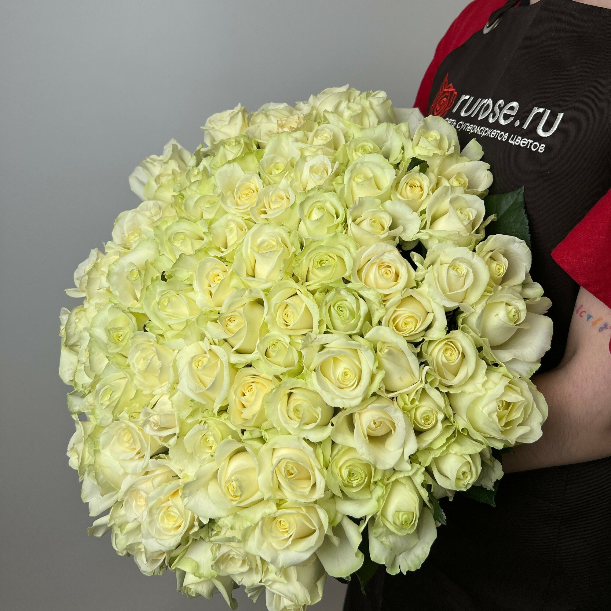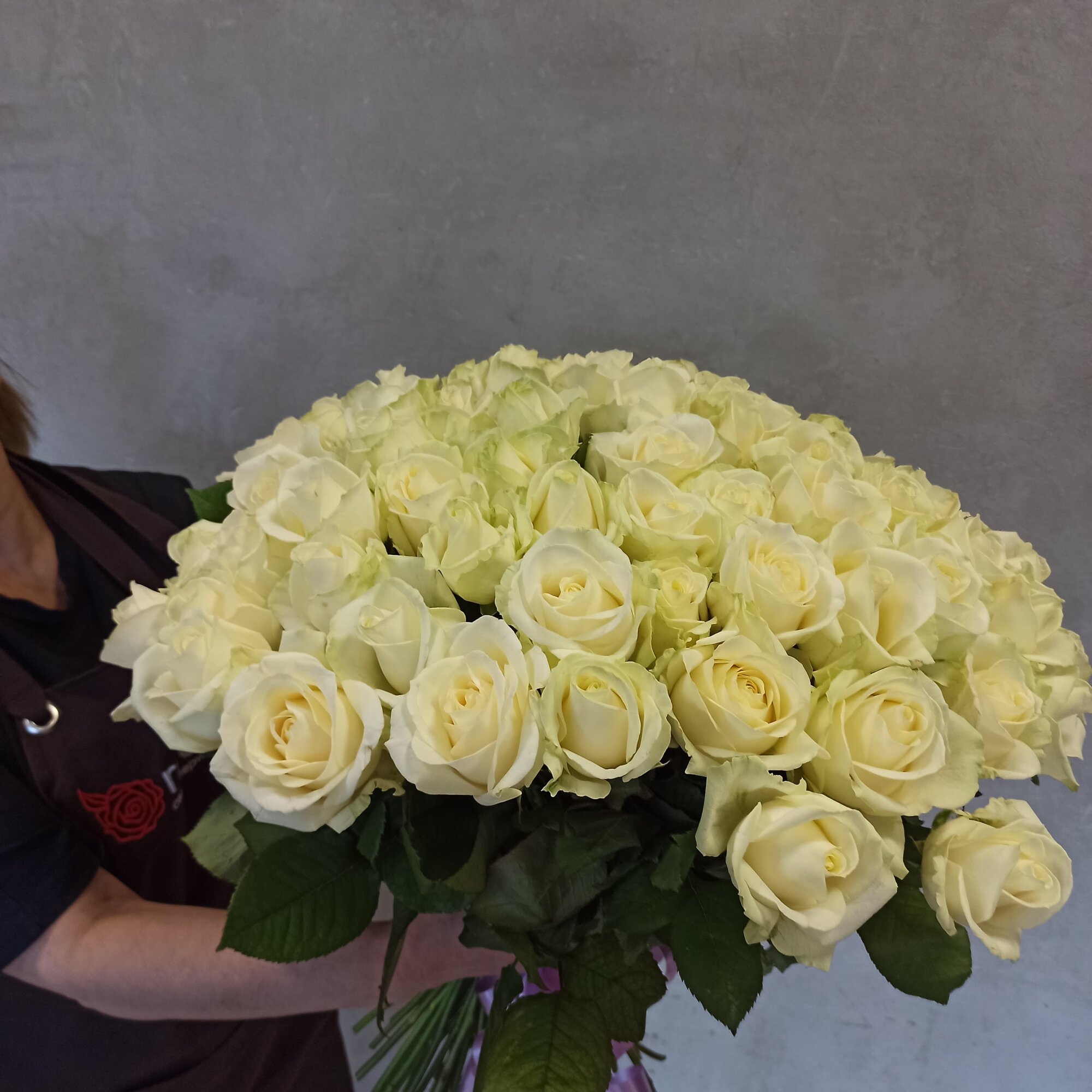 Живые цветы букет роз 91 шт. 60 см. белый, сорт "Аваланж"