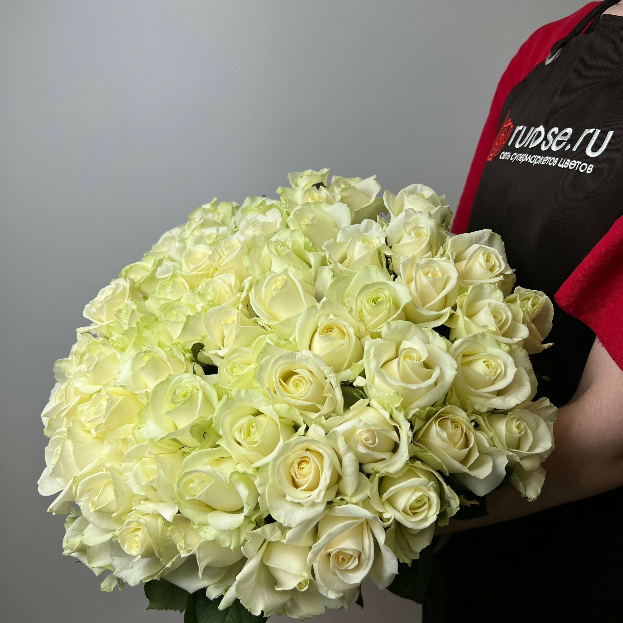 Живые цветы букет роз 91 шт. 60 см. белый, сорт "Аваланж"