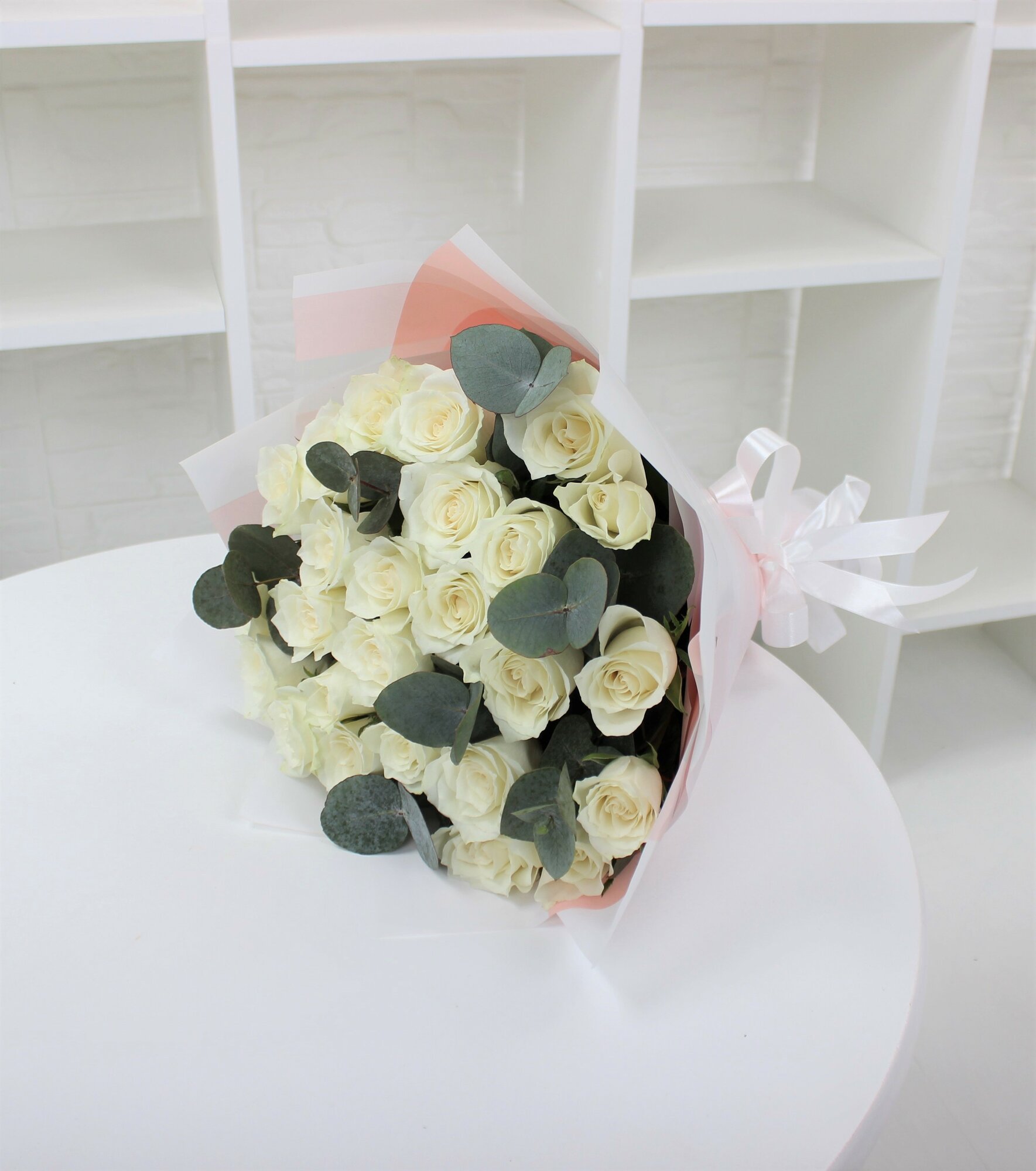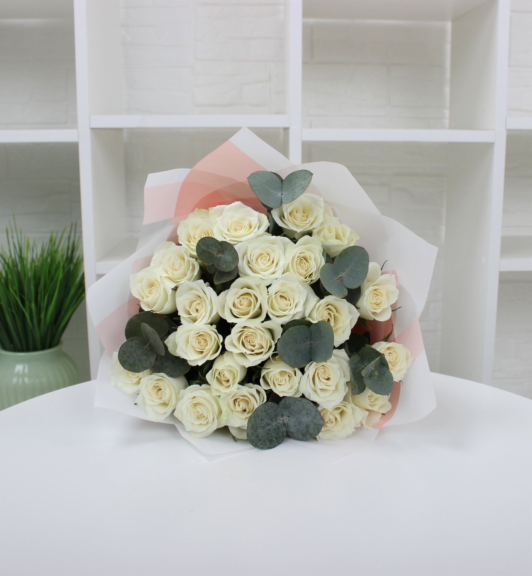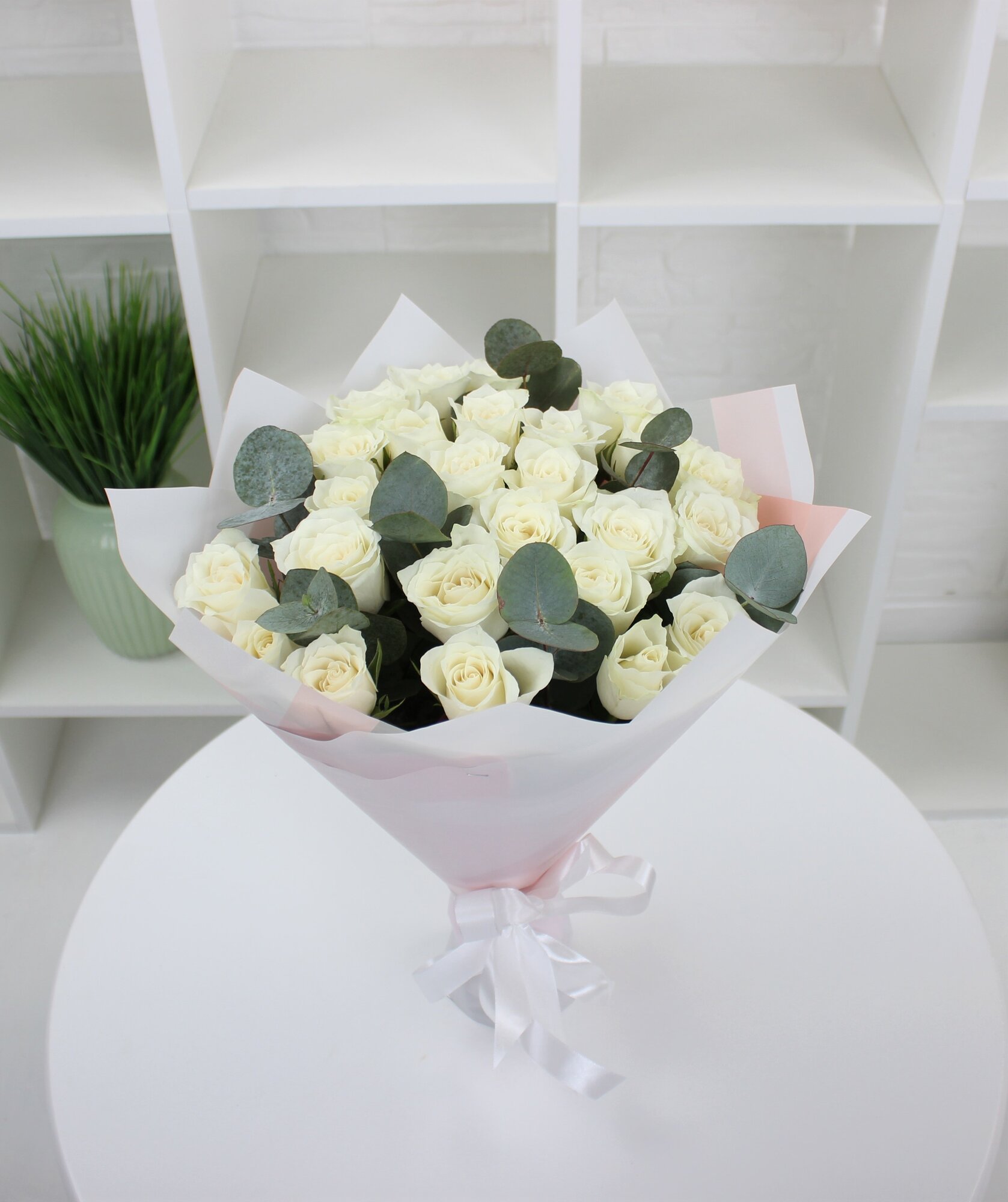 Ниже Вы можете прочитать отзывы на 25 белых роз 40см с эвкалиптом, ознакомится с подробными характеристиками, посмотреть интересные обзоры и фотографии на 25 белых роз 40см с эвкалиптом.