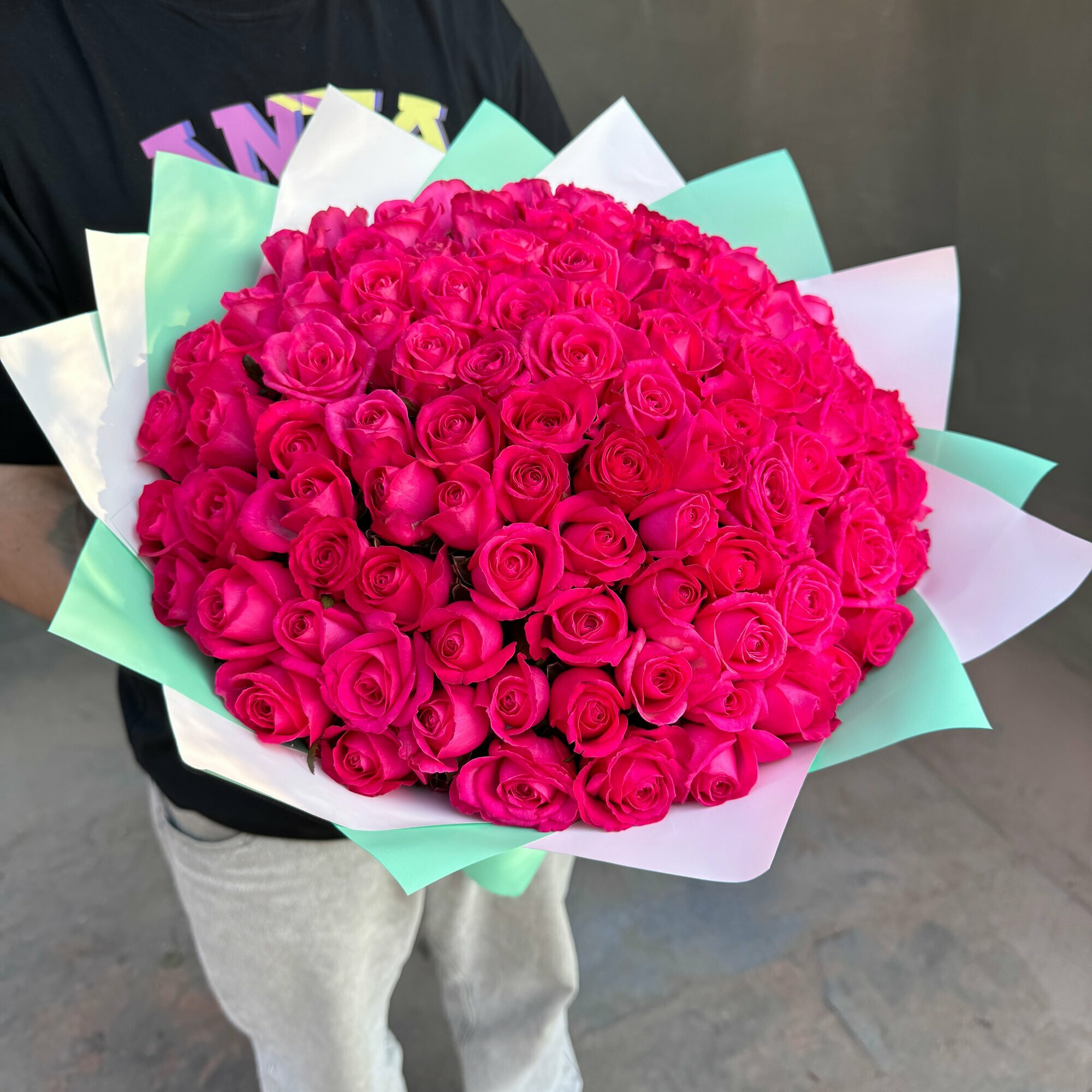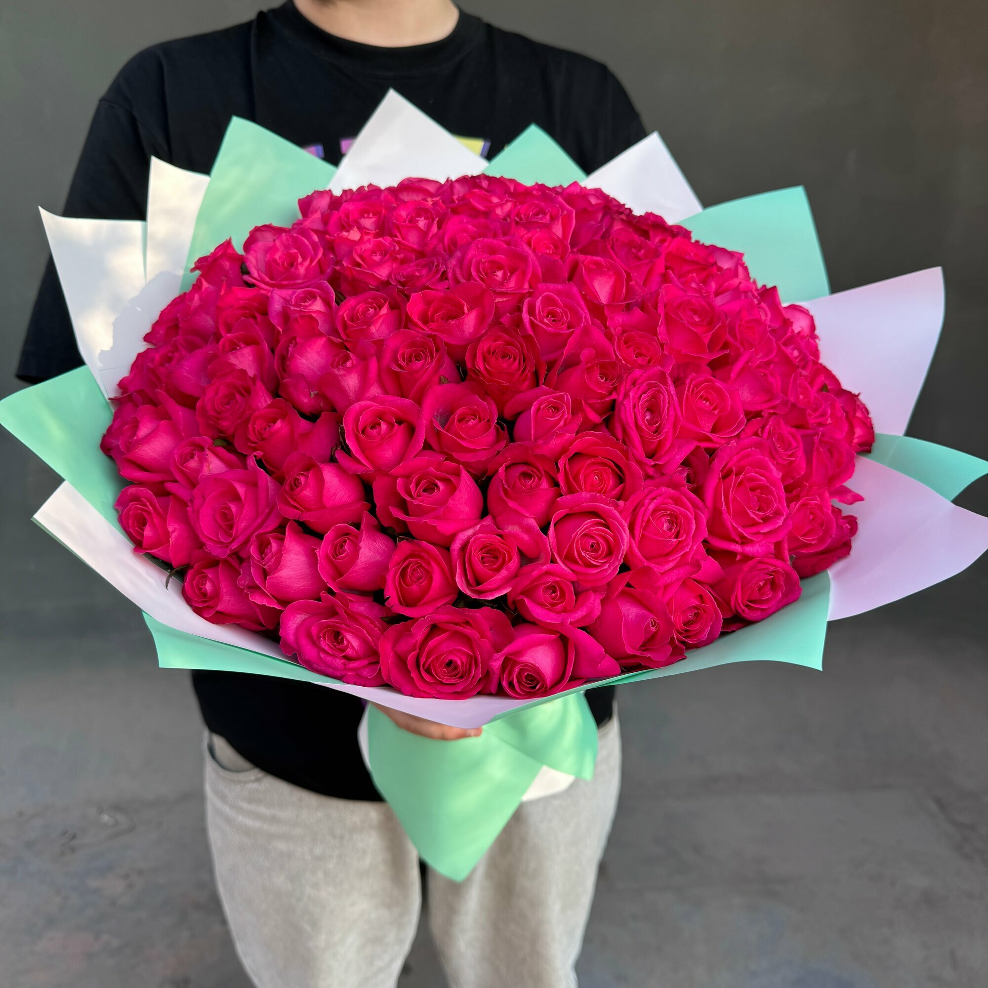 Купить Розы Медиум 101 шт розовые Мио тиффани упаковка 40 см арт. 13221 хит st nhi npo kr ak