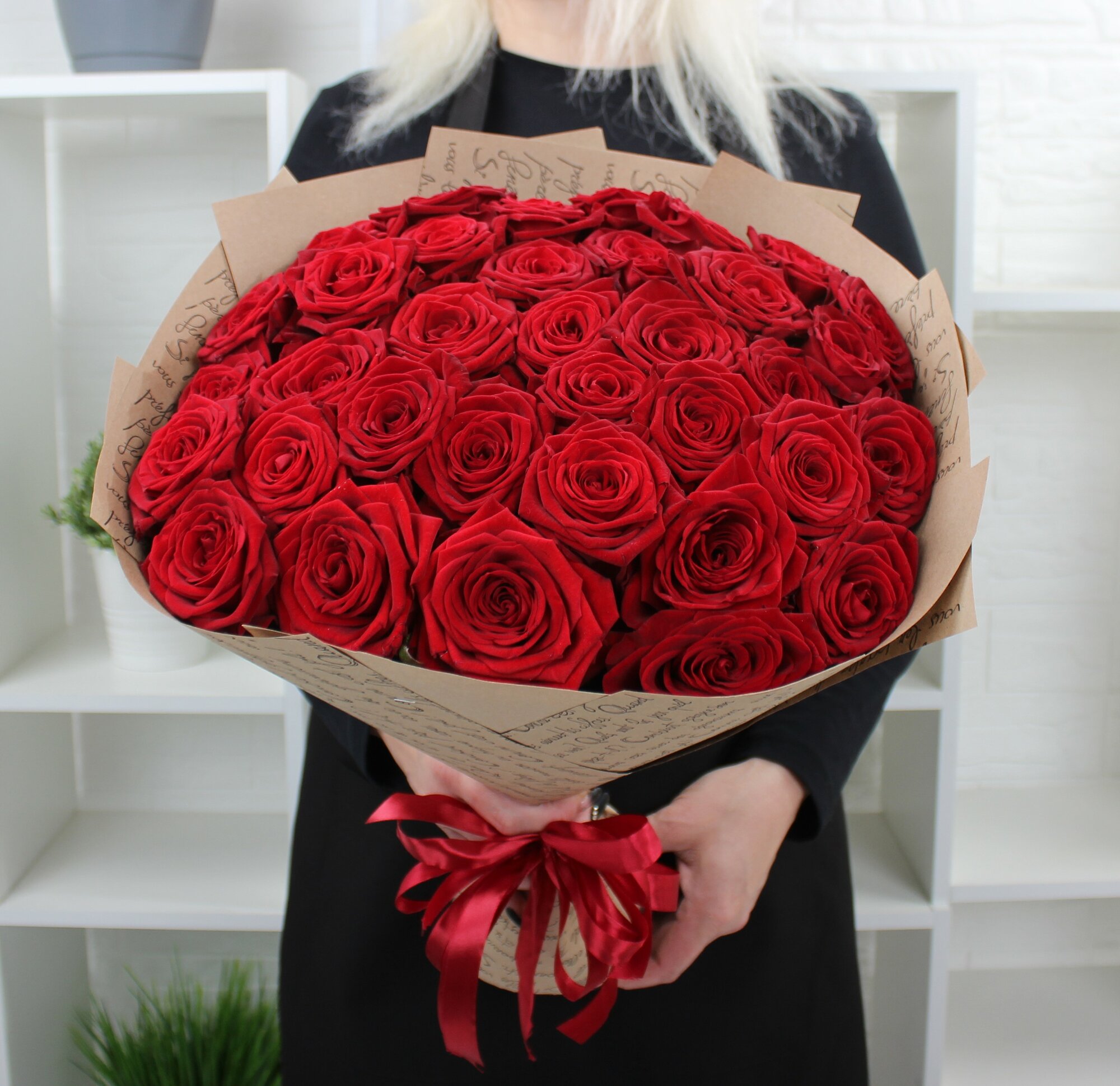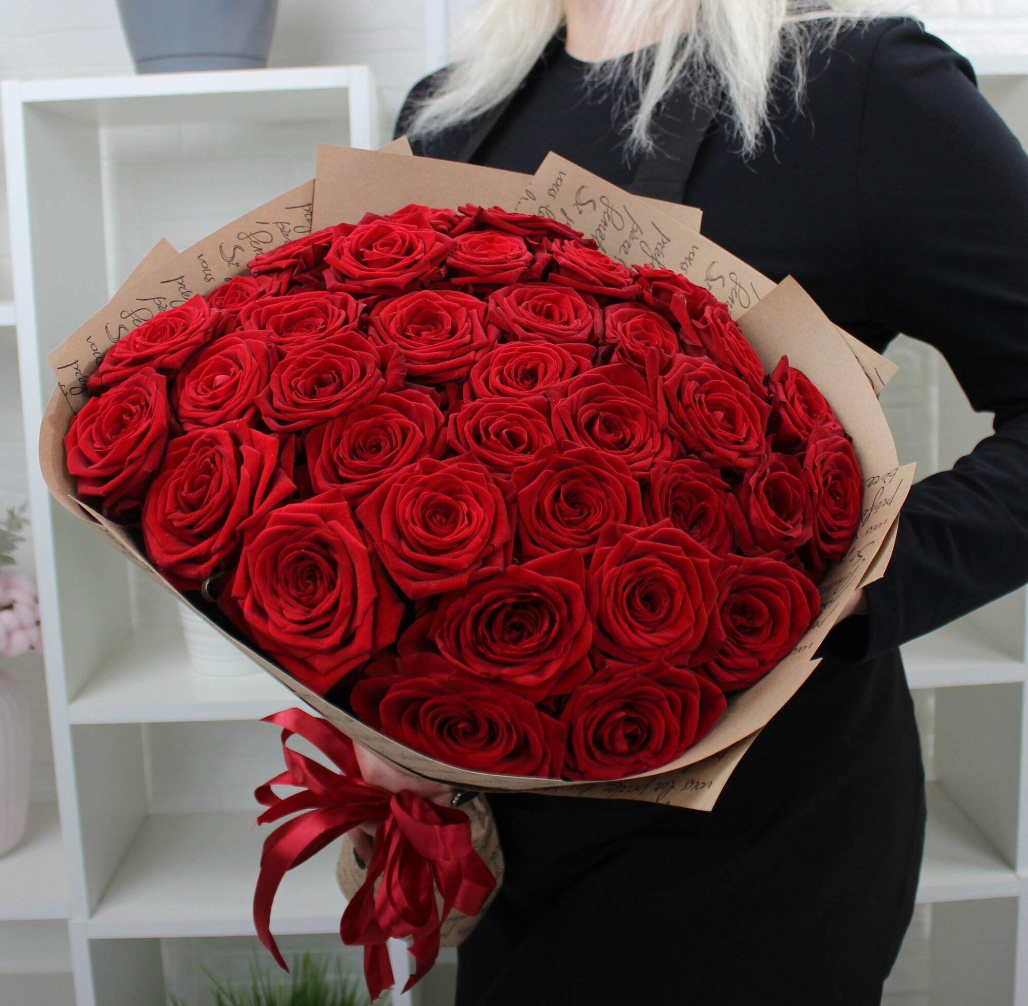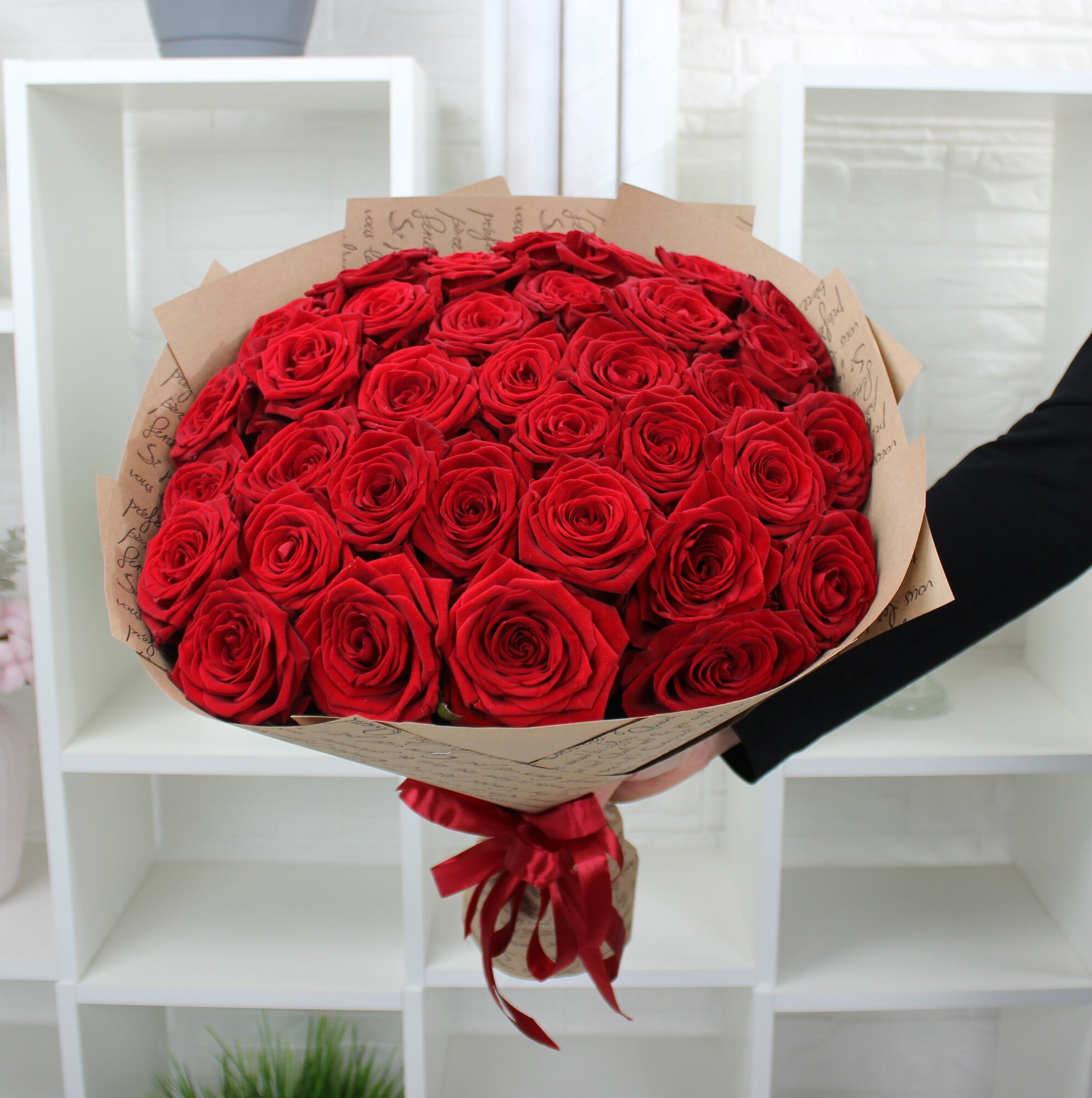 35 красных роз 50см "Ред Наоми" интересное: