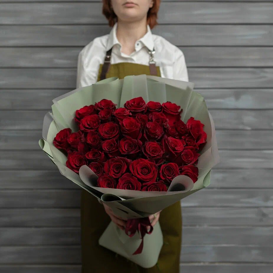 Купить Букет живых цветов из 35 красных роз в упаковке Эквадор 60 см