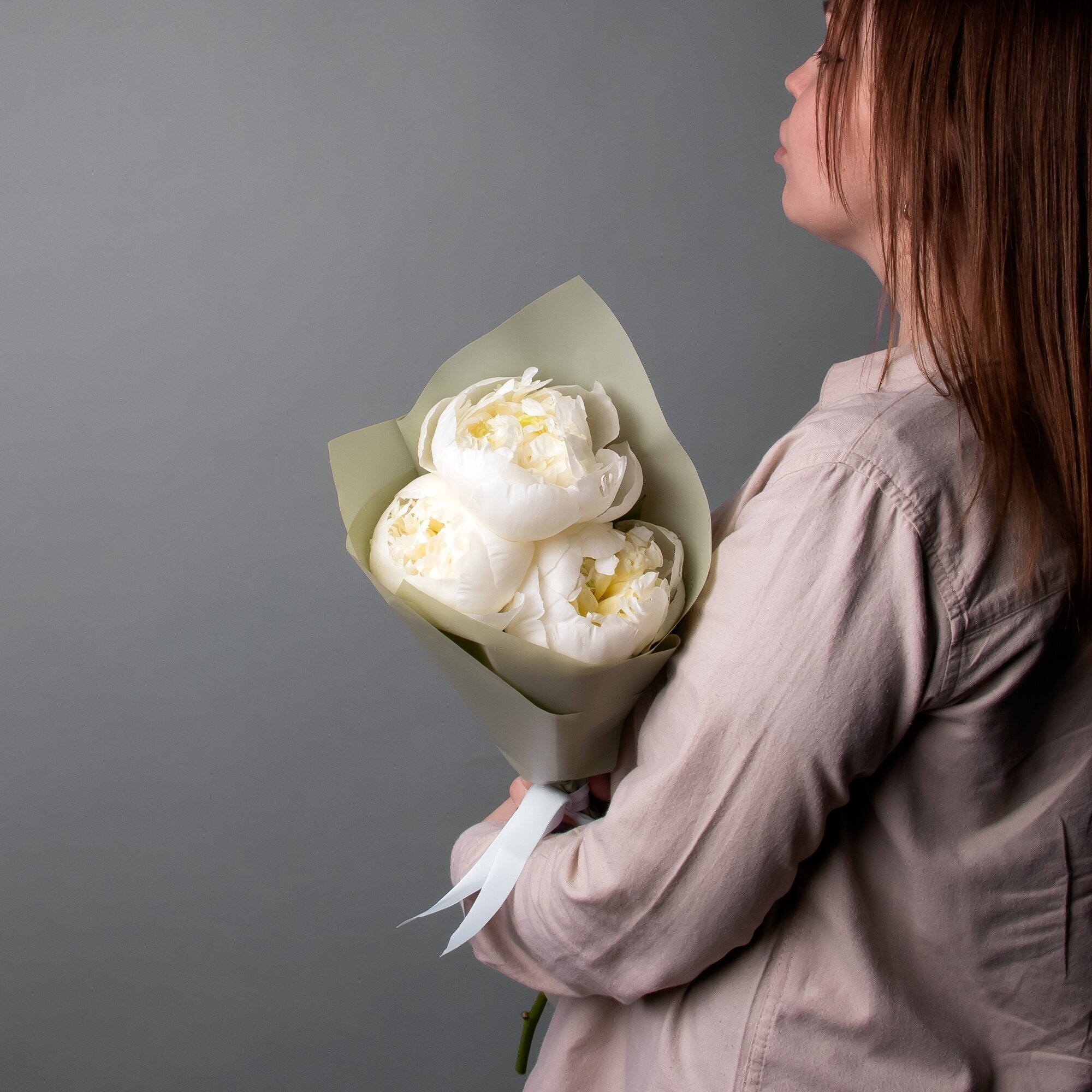 Купить Букет Пионов "Дюшес де немур" 3 шт Высота 60 см