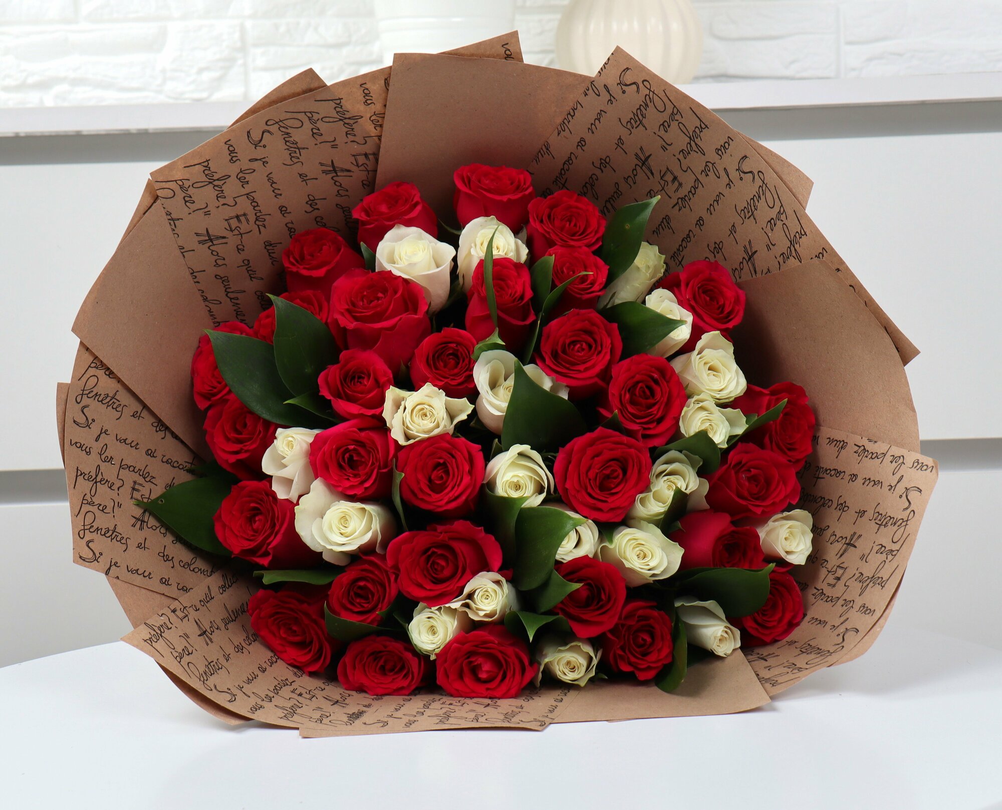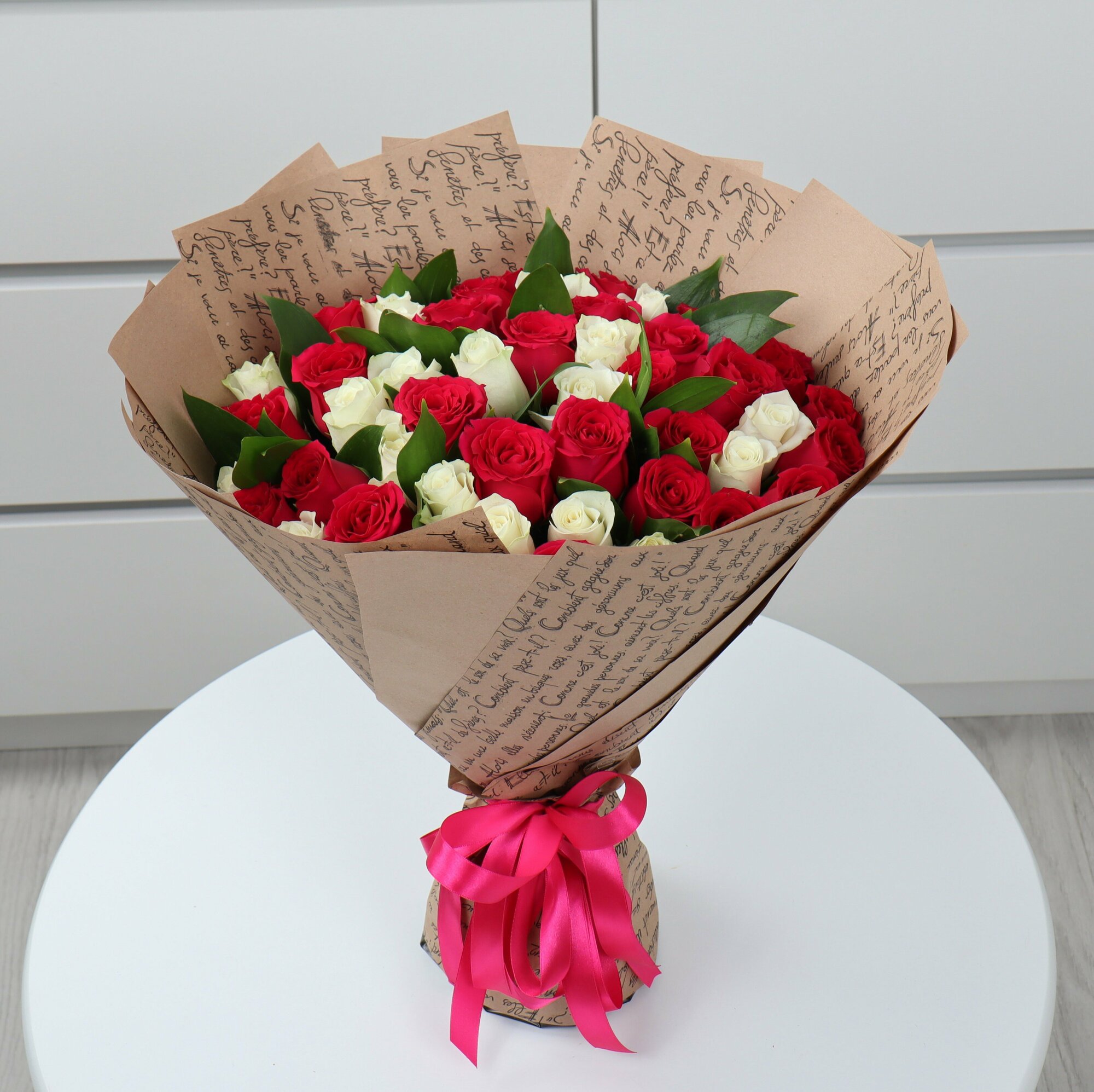 Розы в крафт коробке 11 шт 50 см белые - Просто роза ру