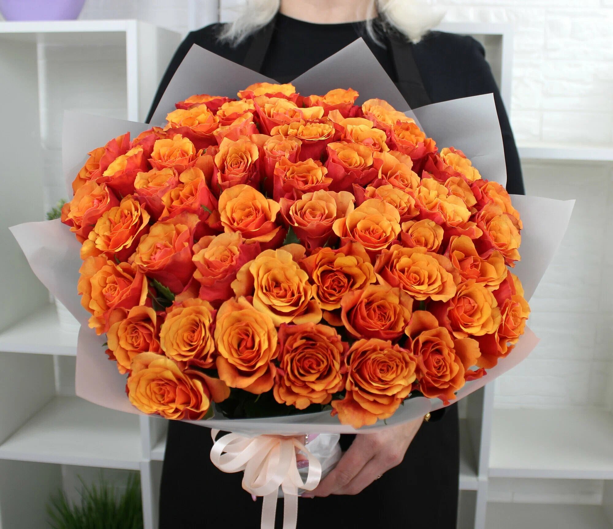 Купить 51 огненная роза 40см