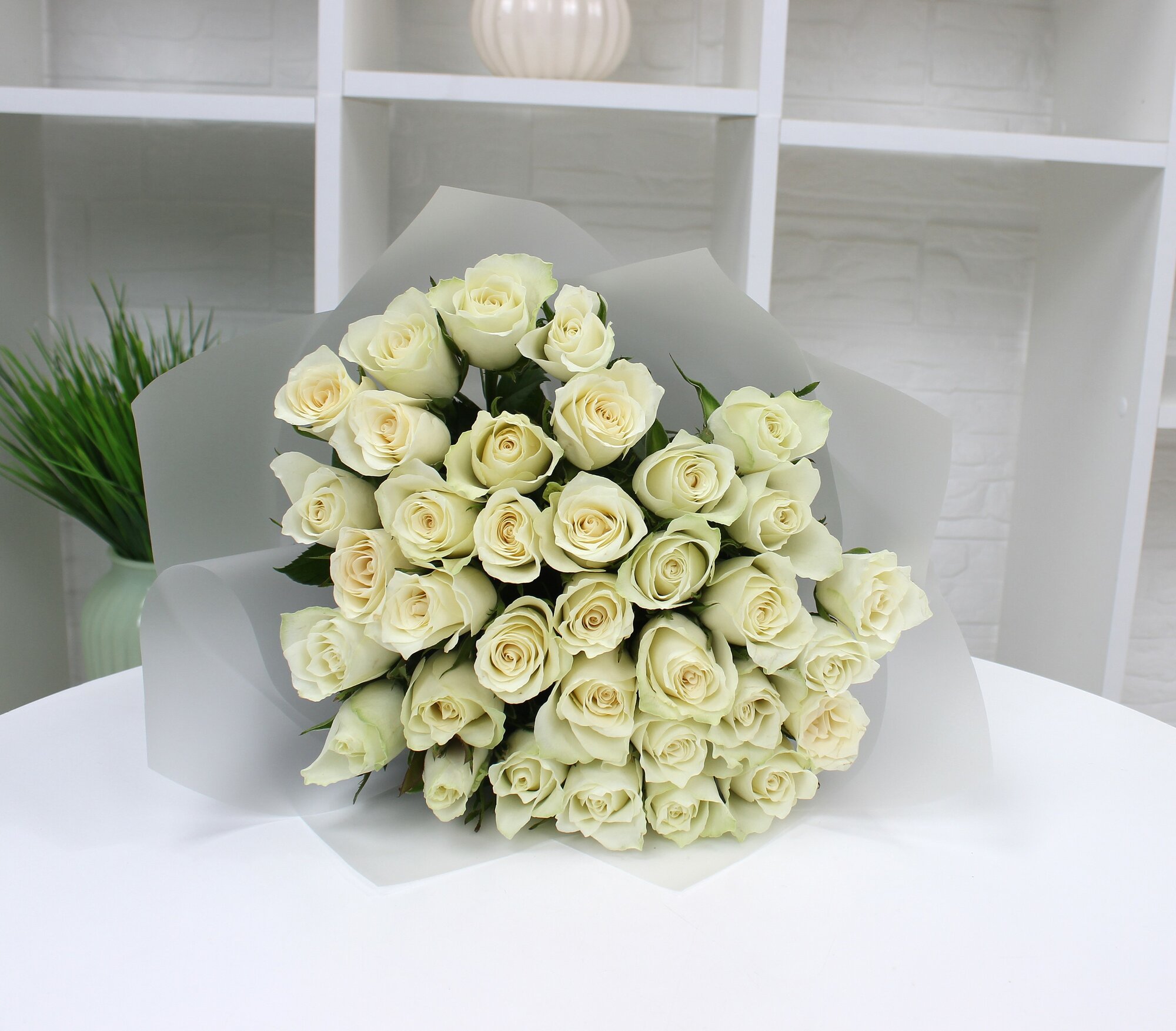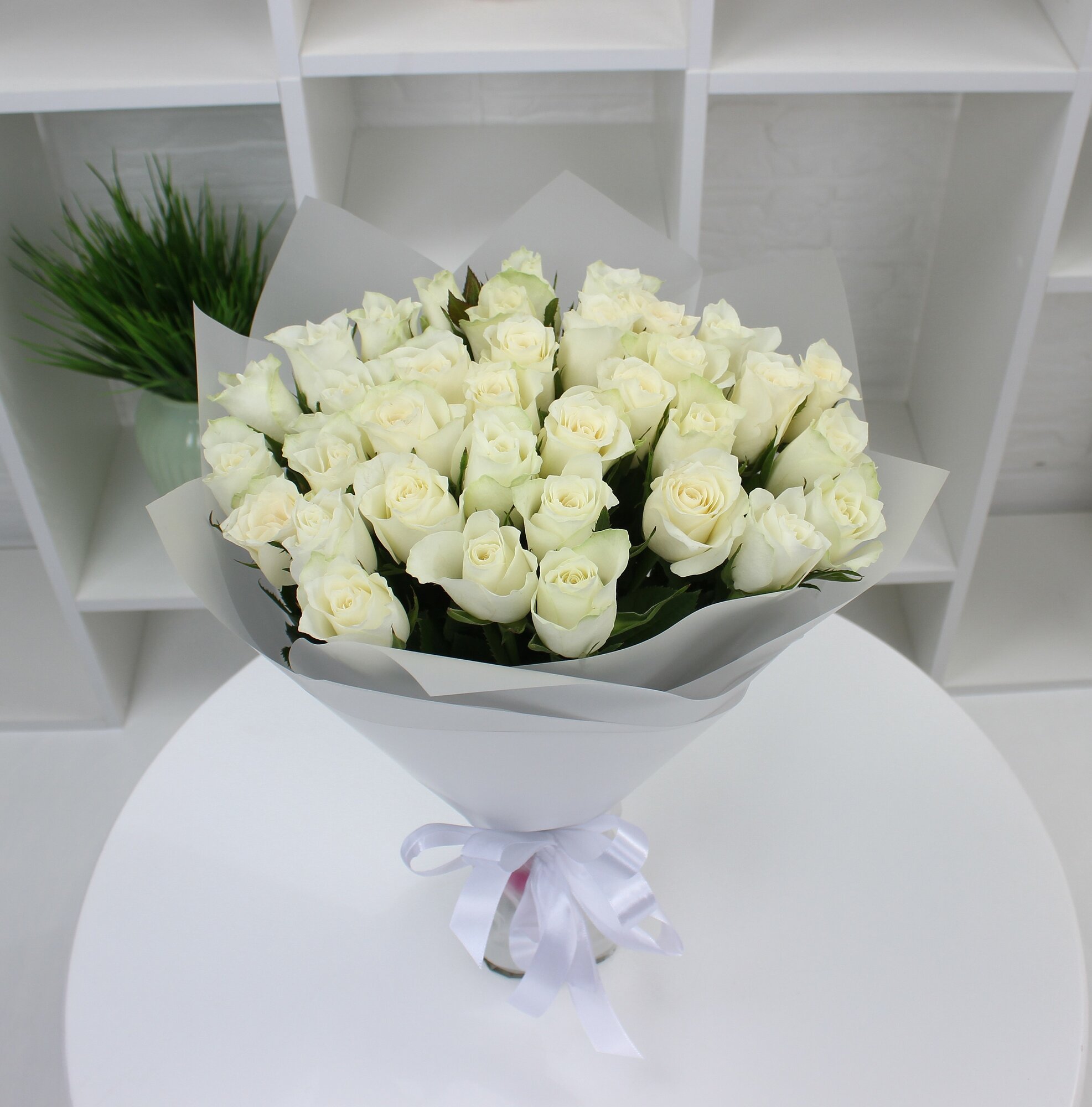35 белых роз 40см интересное: