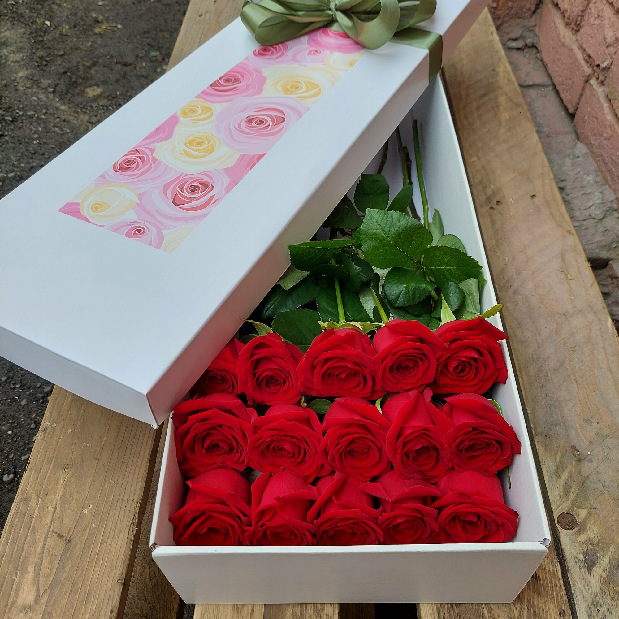 Купить Розы Премиум 27 шт красные в крафт коробке длина 50 см (на фото 13 шт) арт.12846 nst nhi npo kr ak