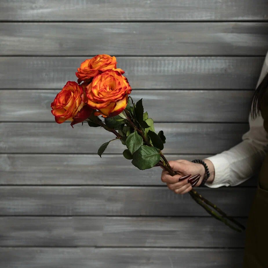 Букет живых цветов из 3 оранжевых роз с лентой Эквадор 60 см интересное: