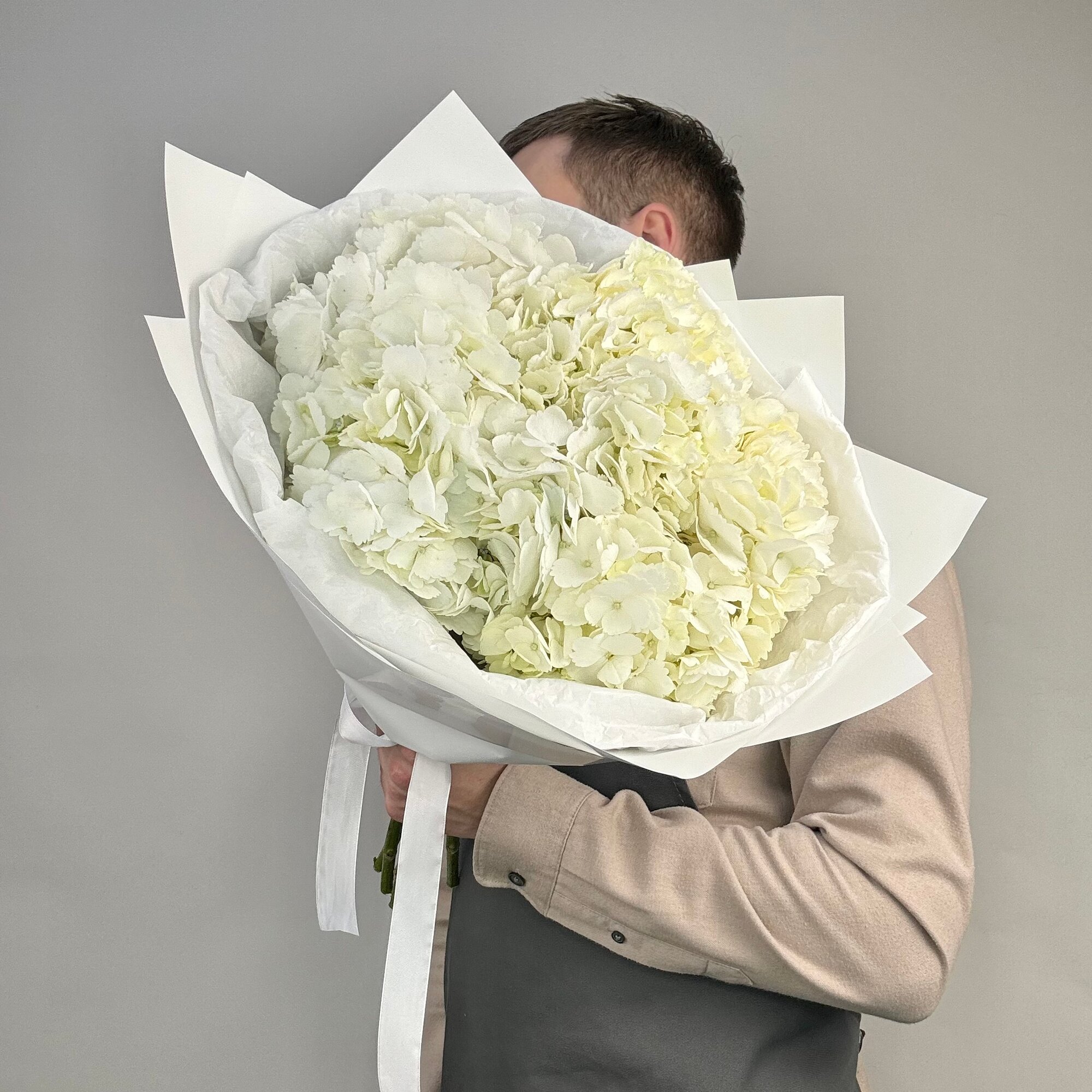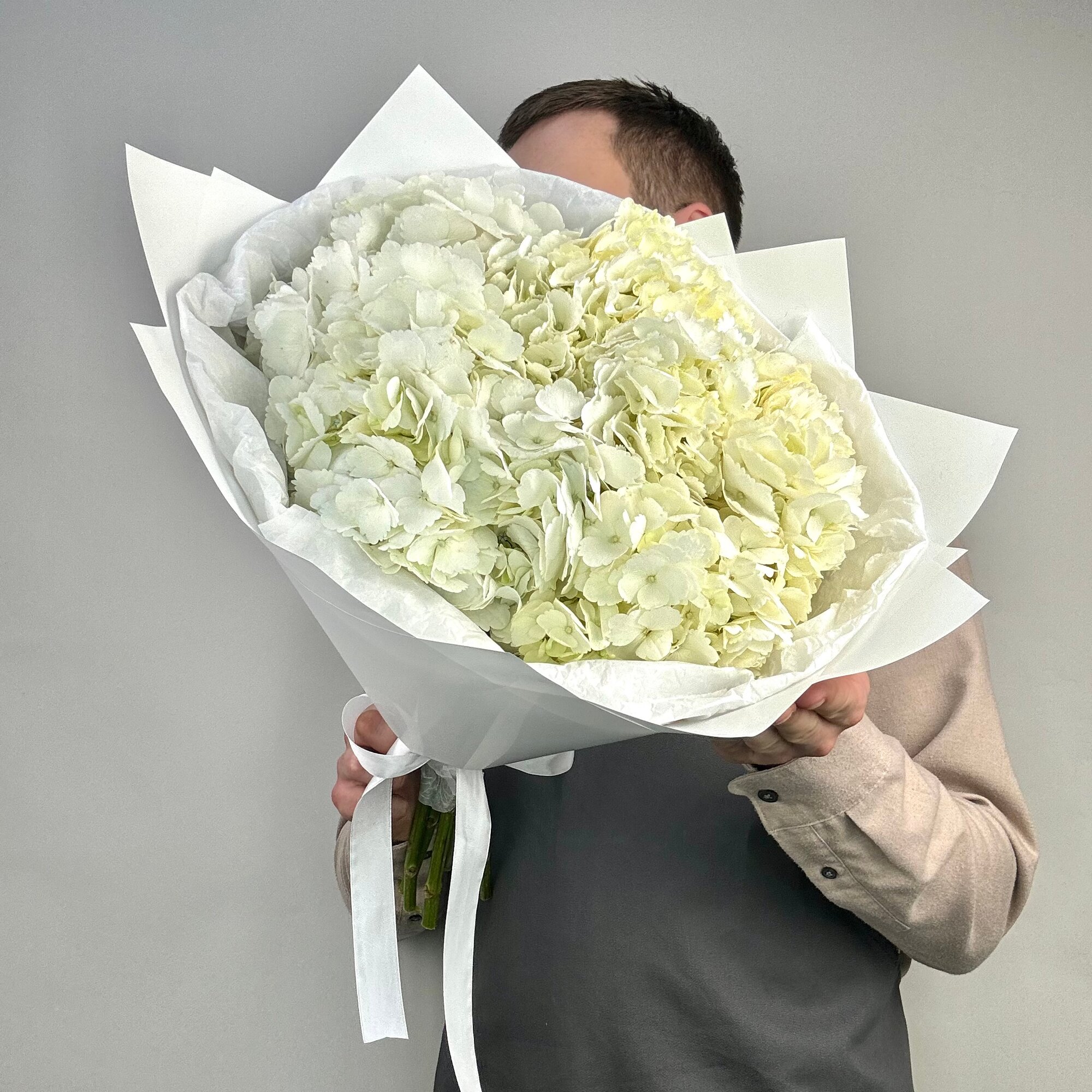 Монобукет из белых гортензий, цветочный магазин Wow Flora интересное: