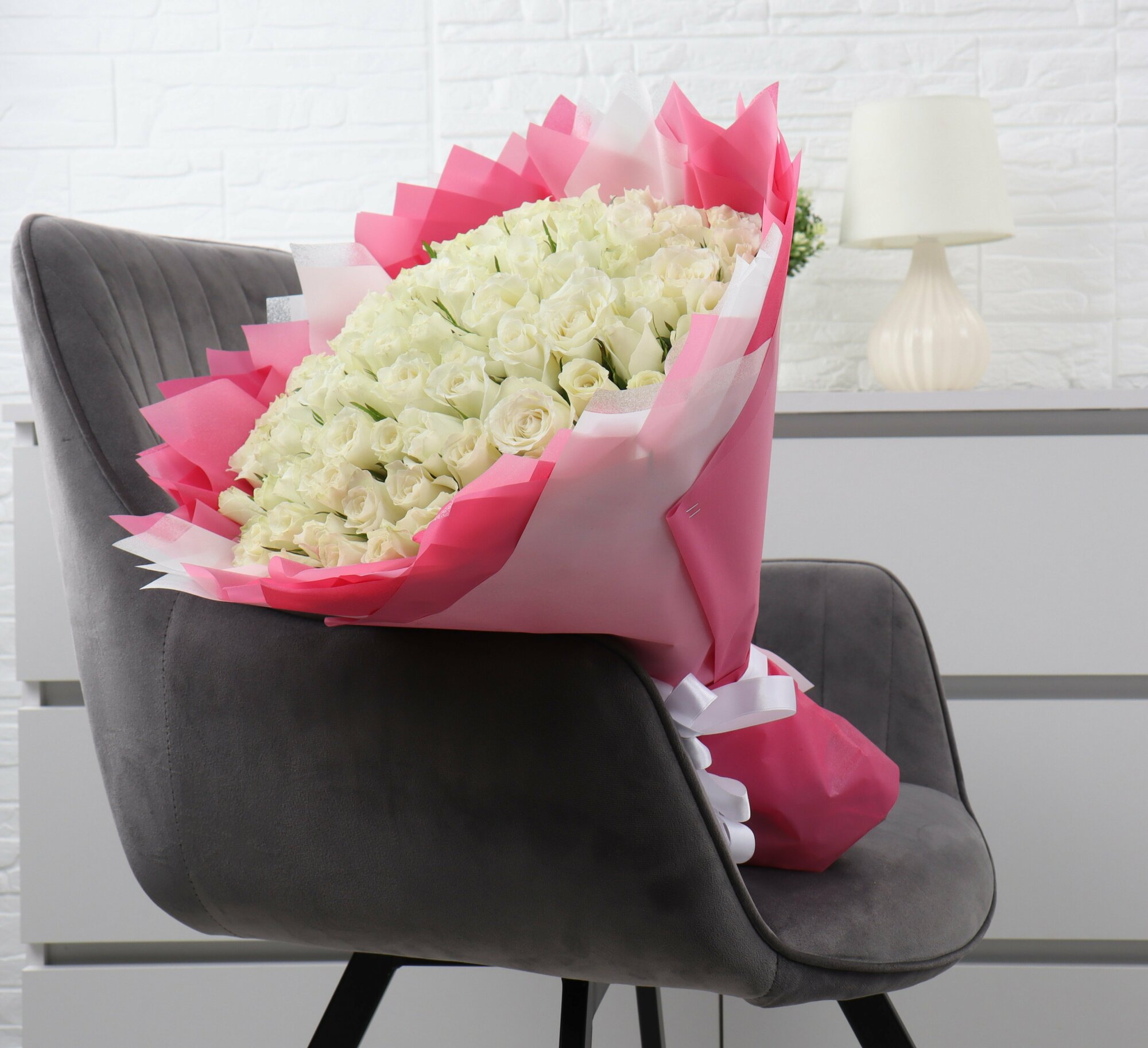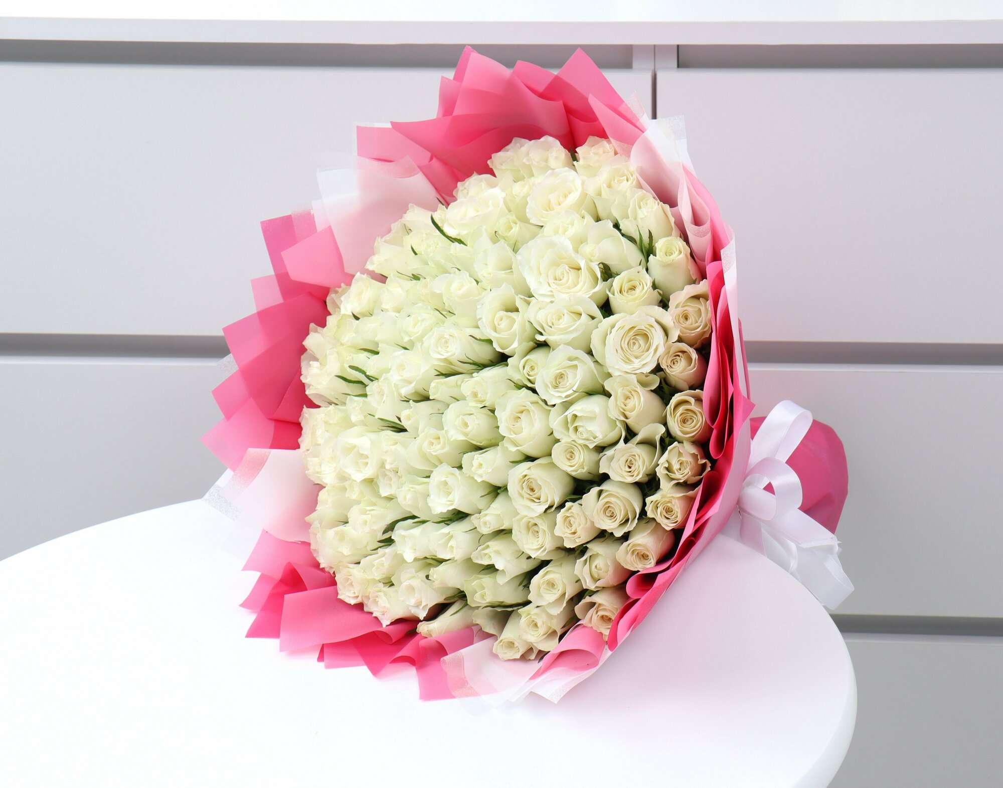 101 белая роза 40см интересное:
