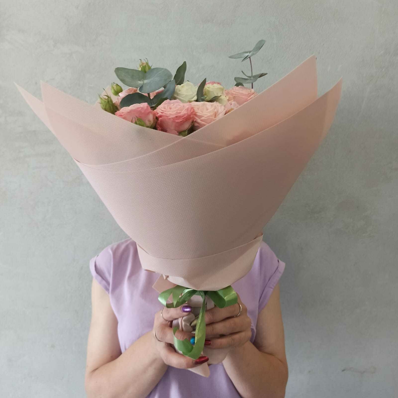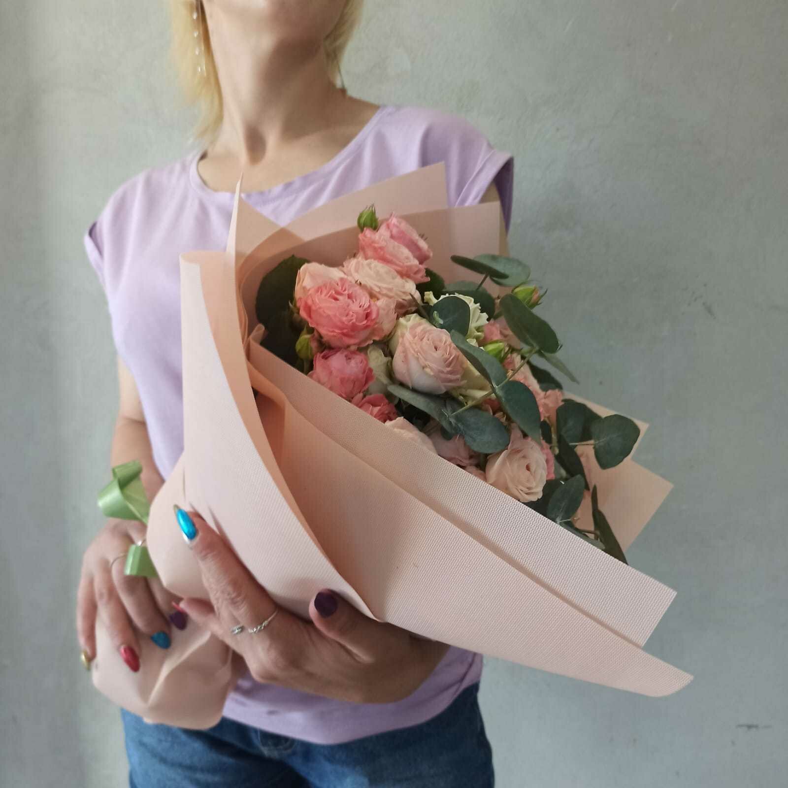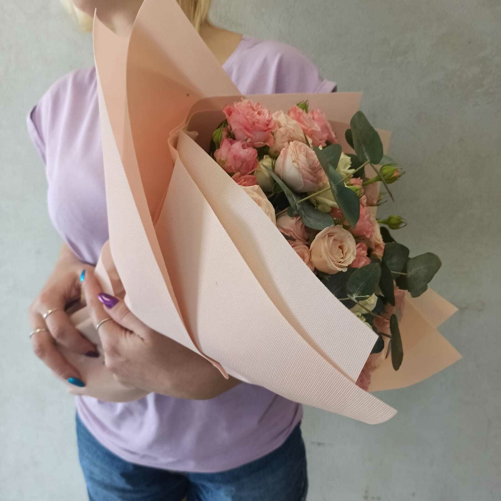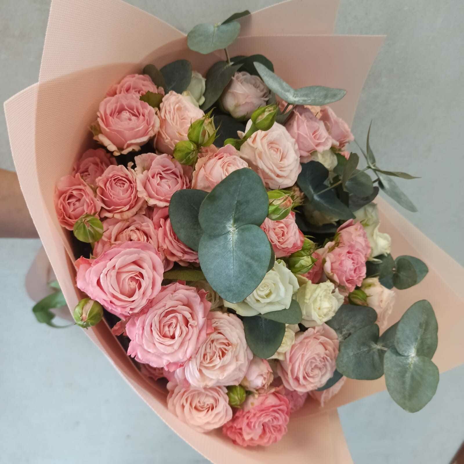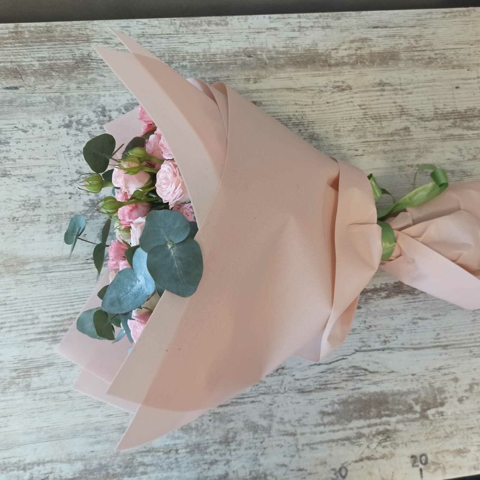 Купить Живые цветы букет розовых кустовых роз в упаковке 17 шт. 40 см. "Флирт"