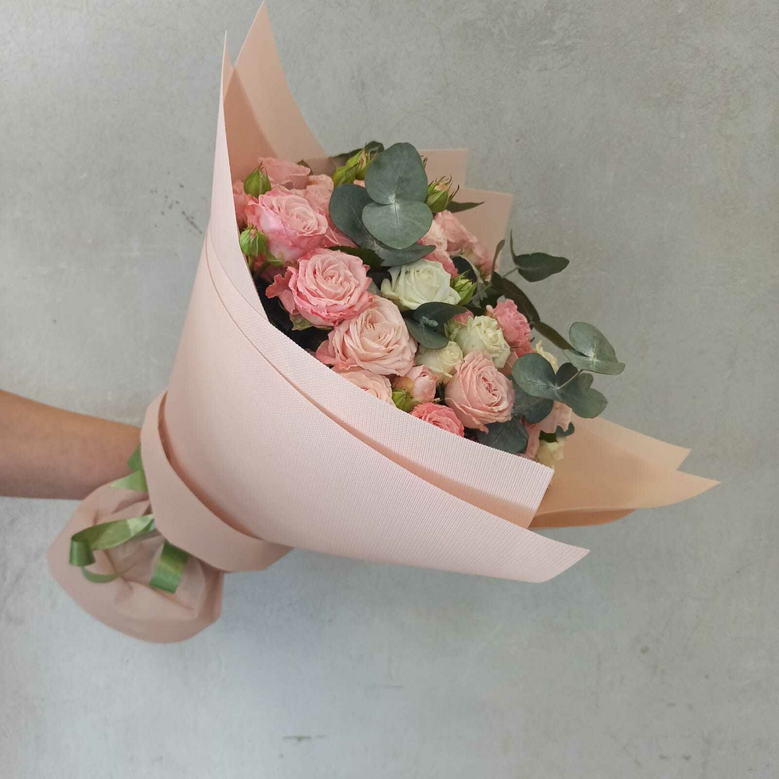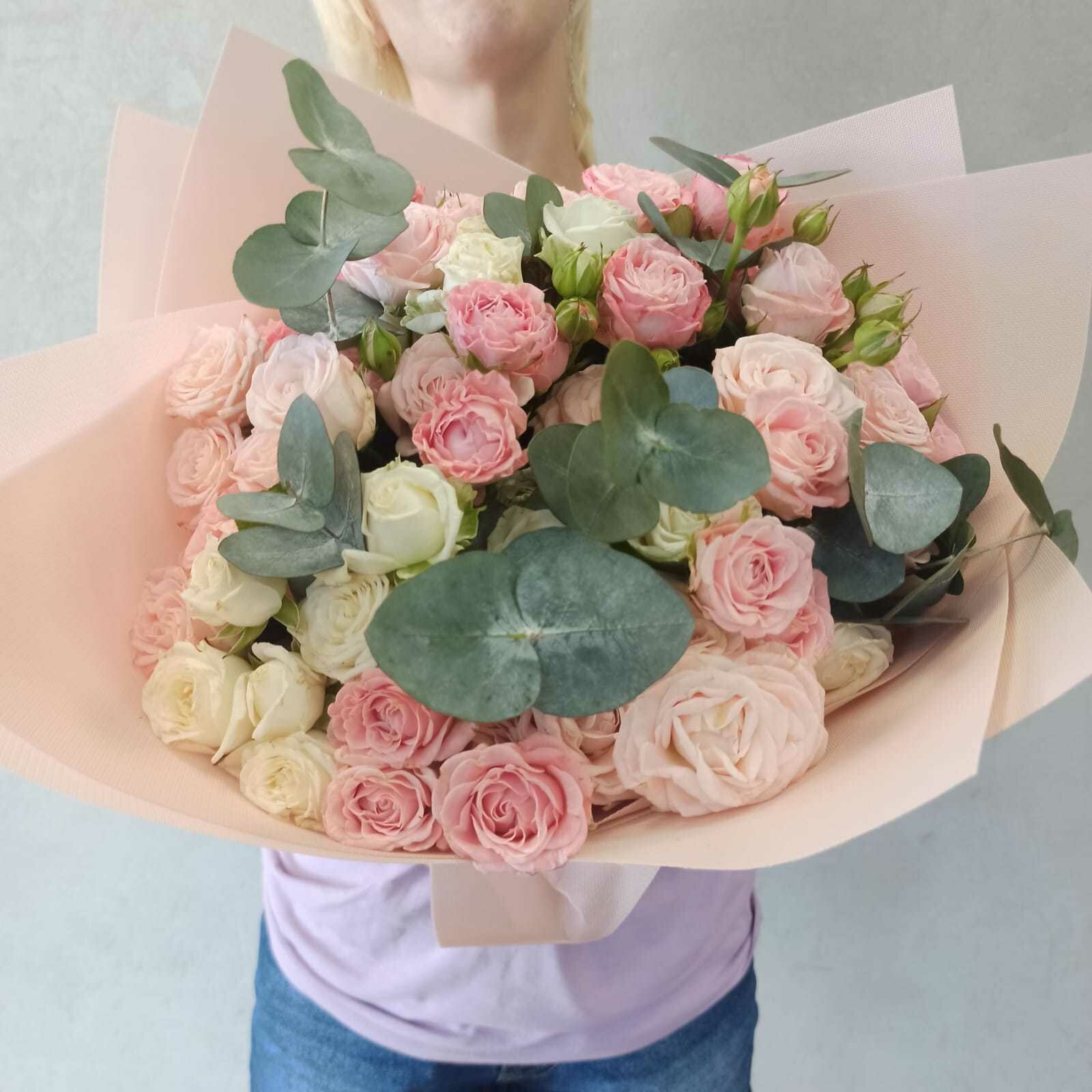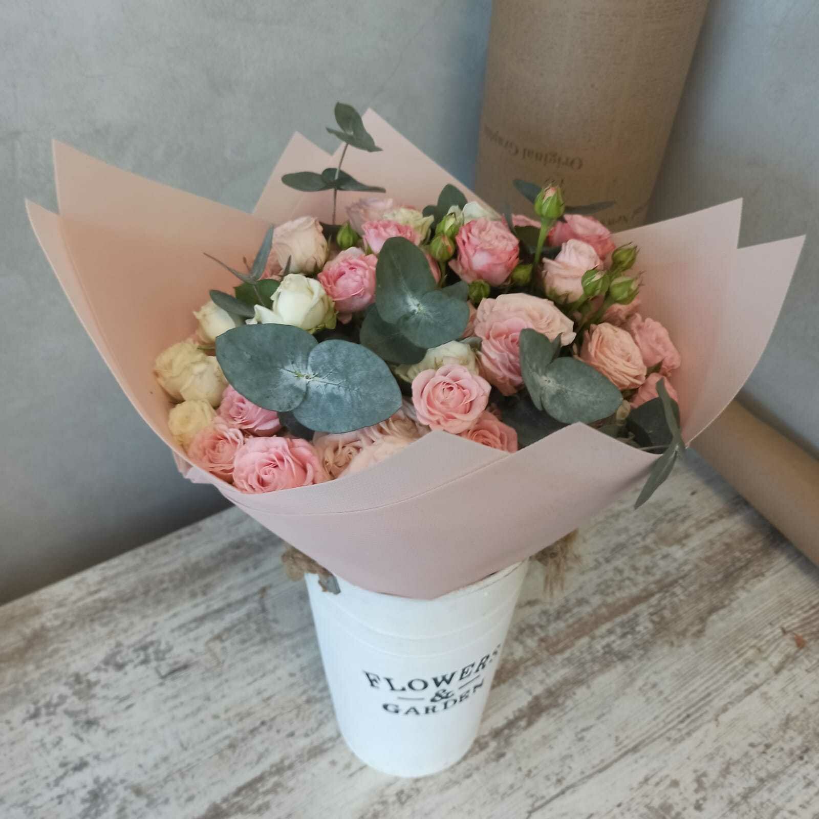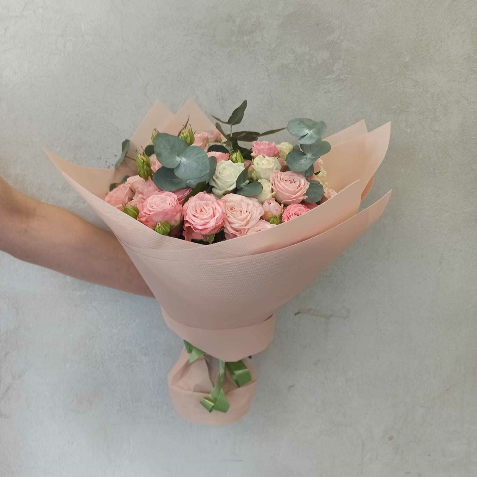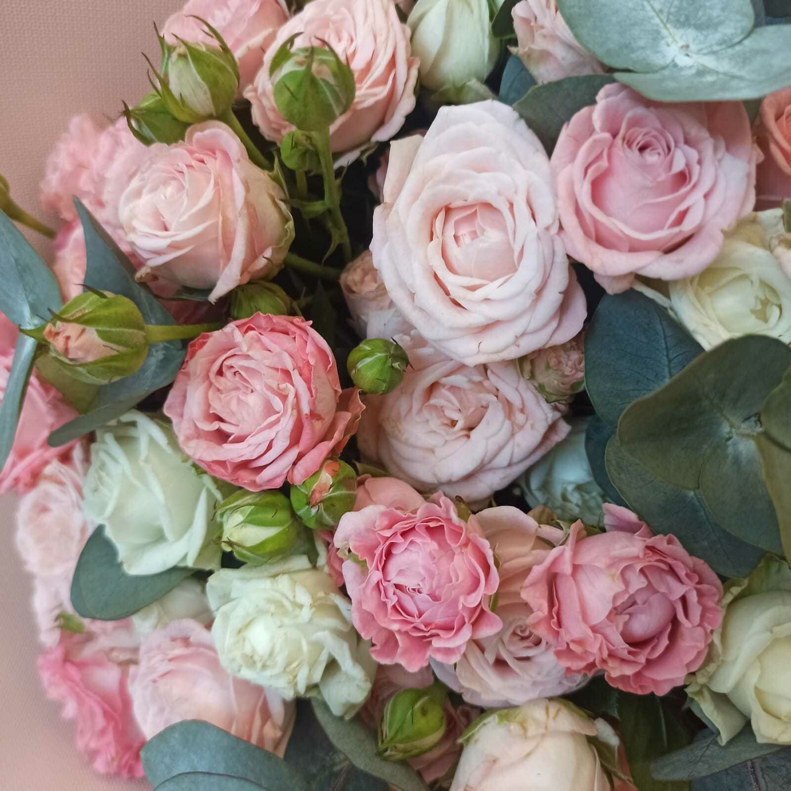 Купить Живые цветы букет розовых кустовых роз в упаковке 17 шт. 40 см. "Флирт"