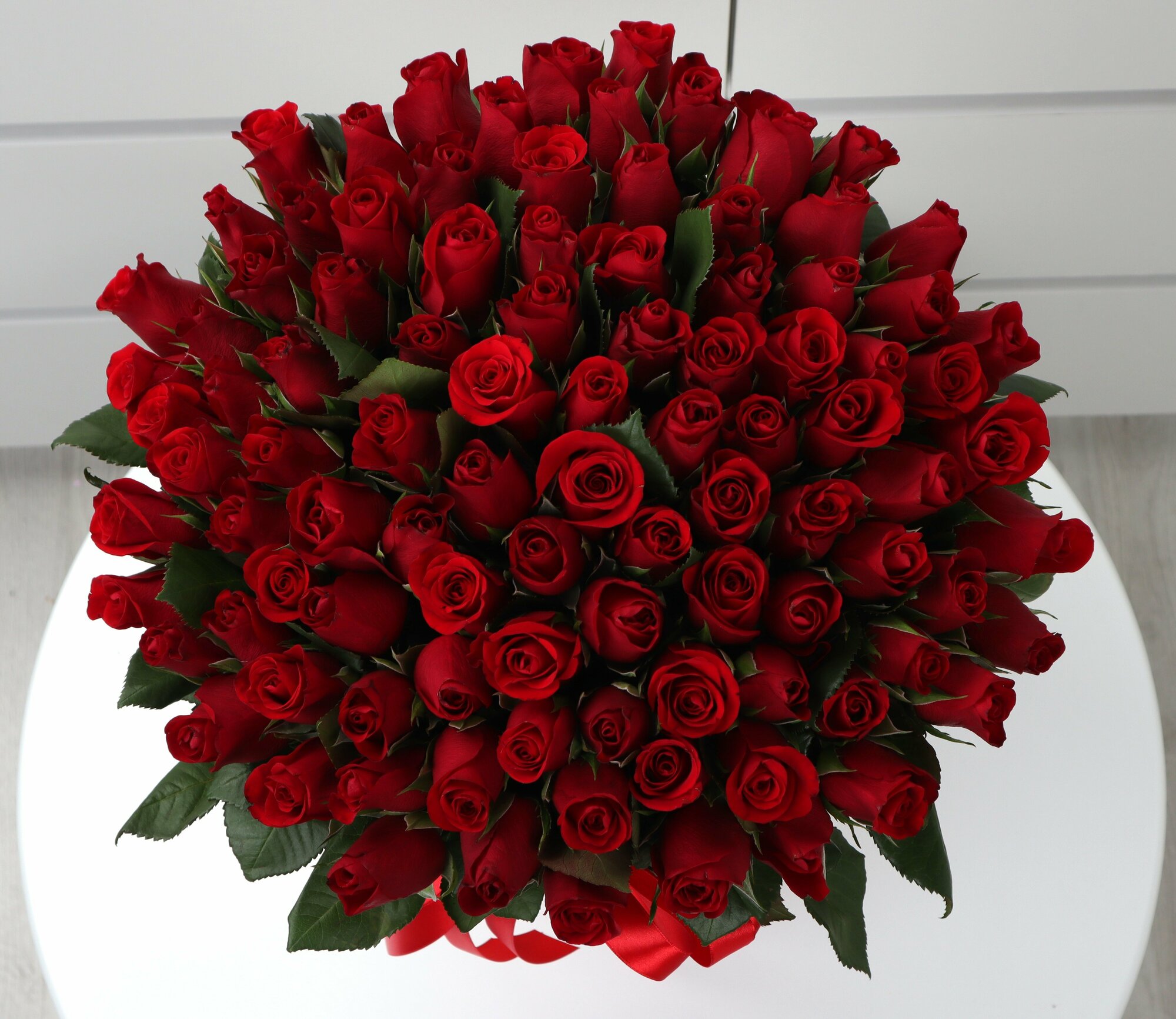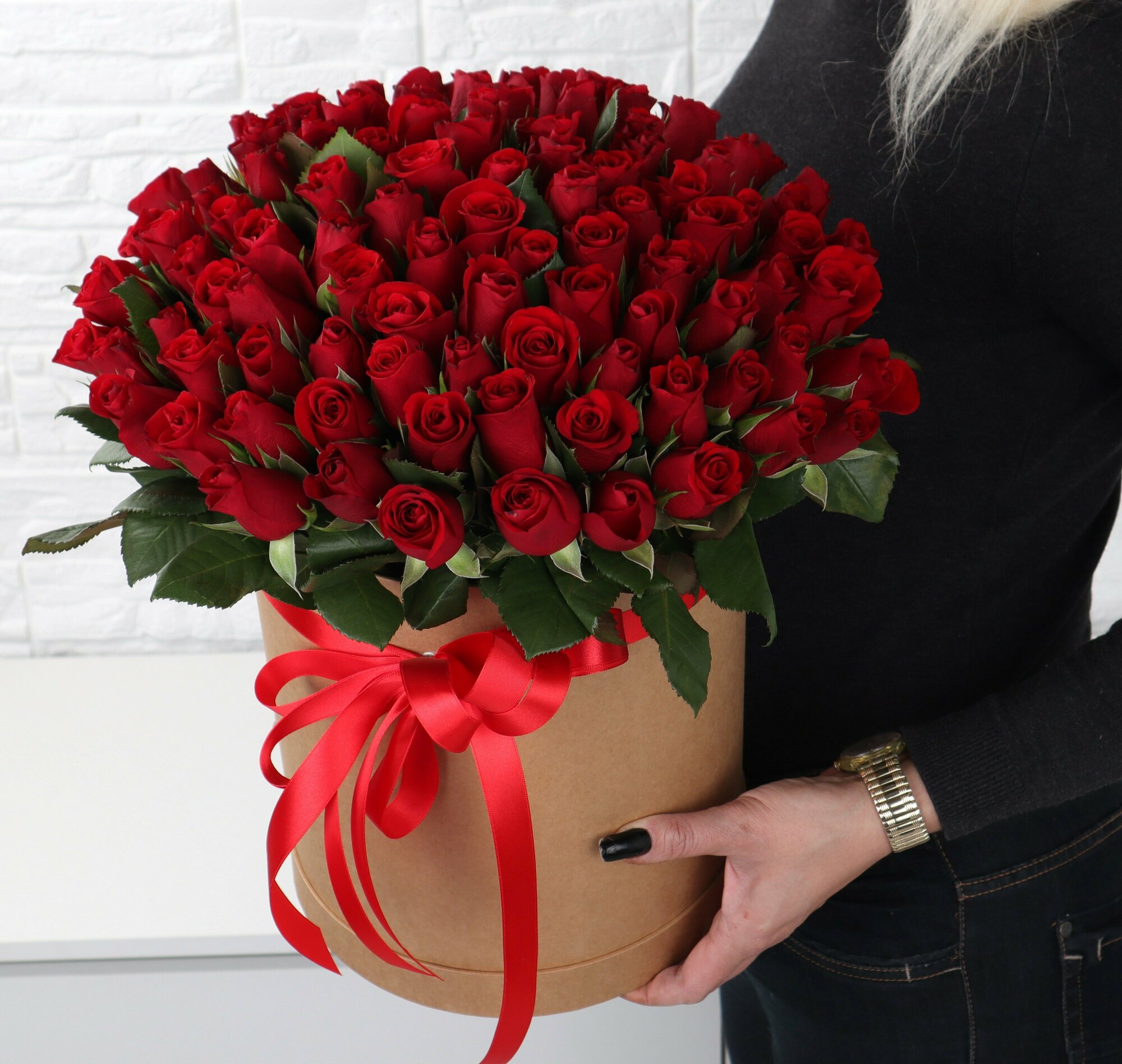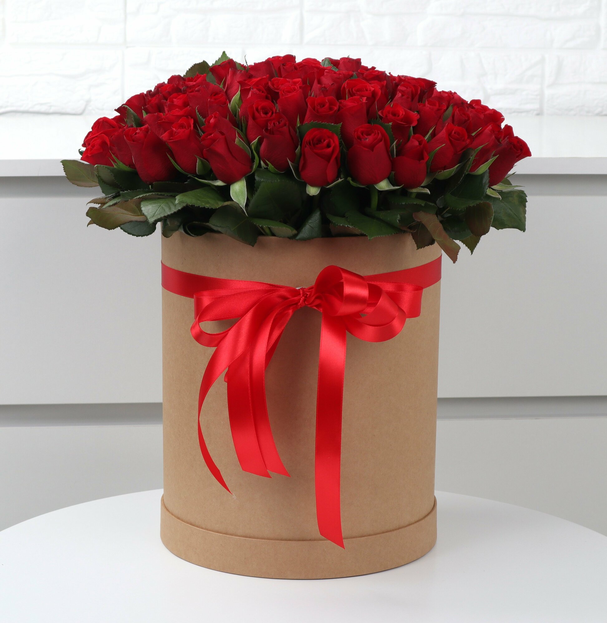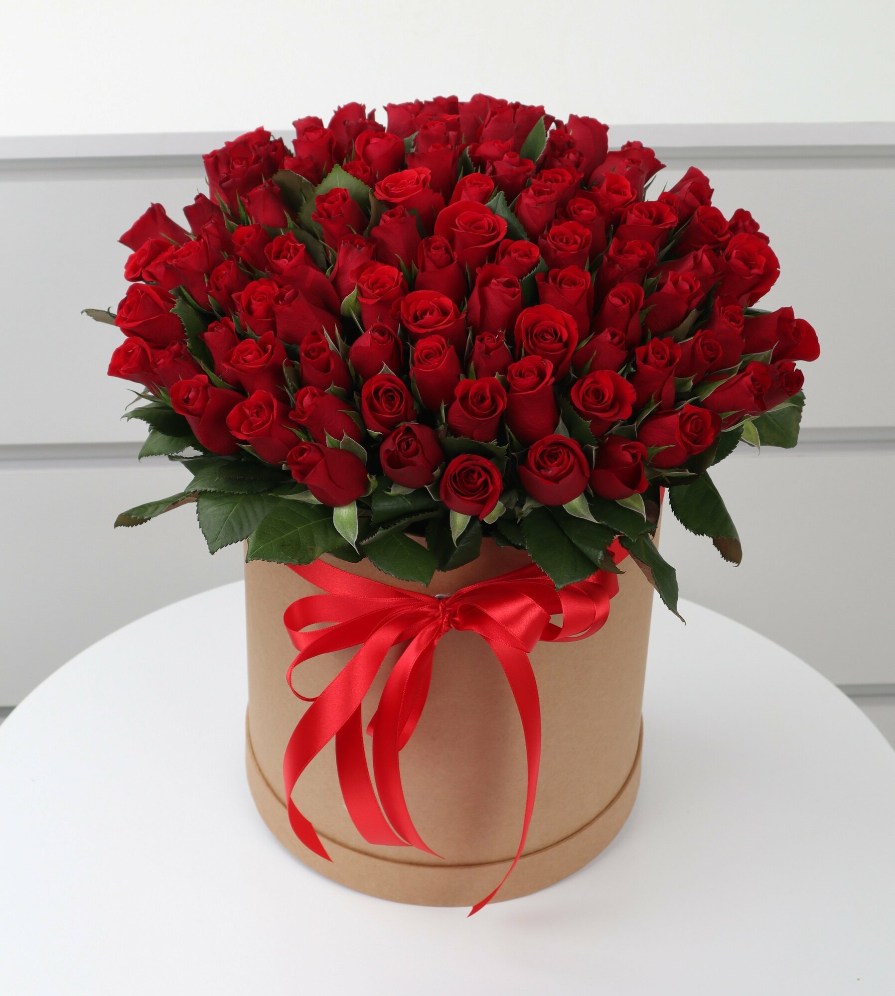 101 красная роза в шляпной коробке интересное: