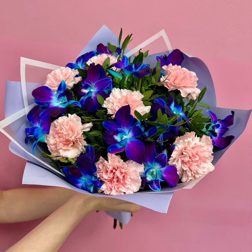 Букет авторский из 7 розовых диантусов и 12 космических орхидей дендробиум от Bestflo купить с доставкой интересное: