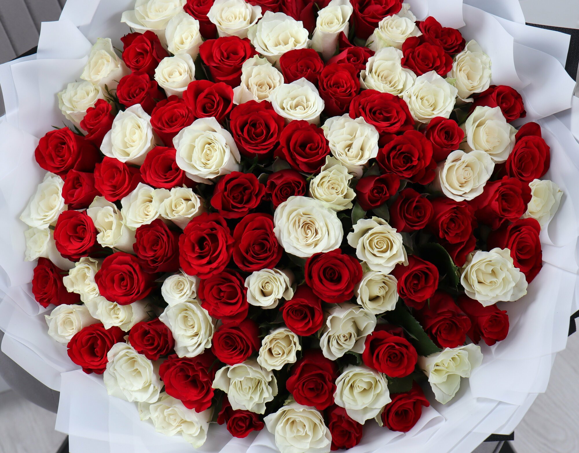 Купить 101 красная и белая роза 40см
