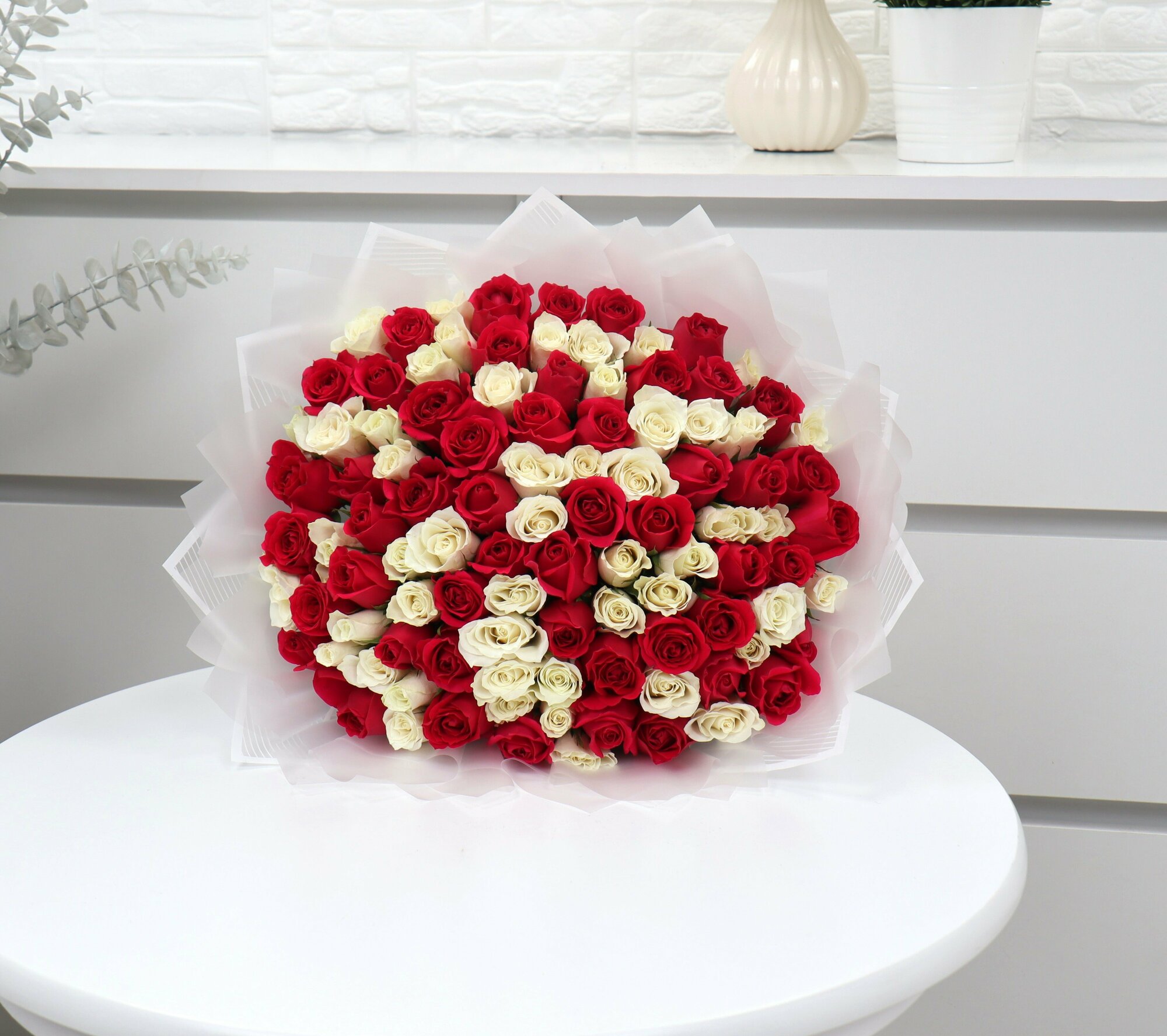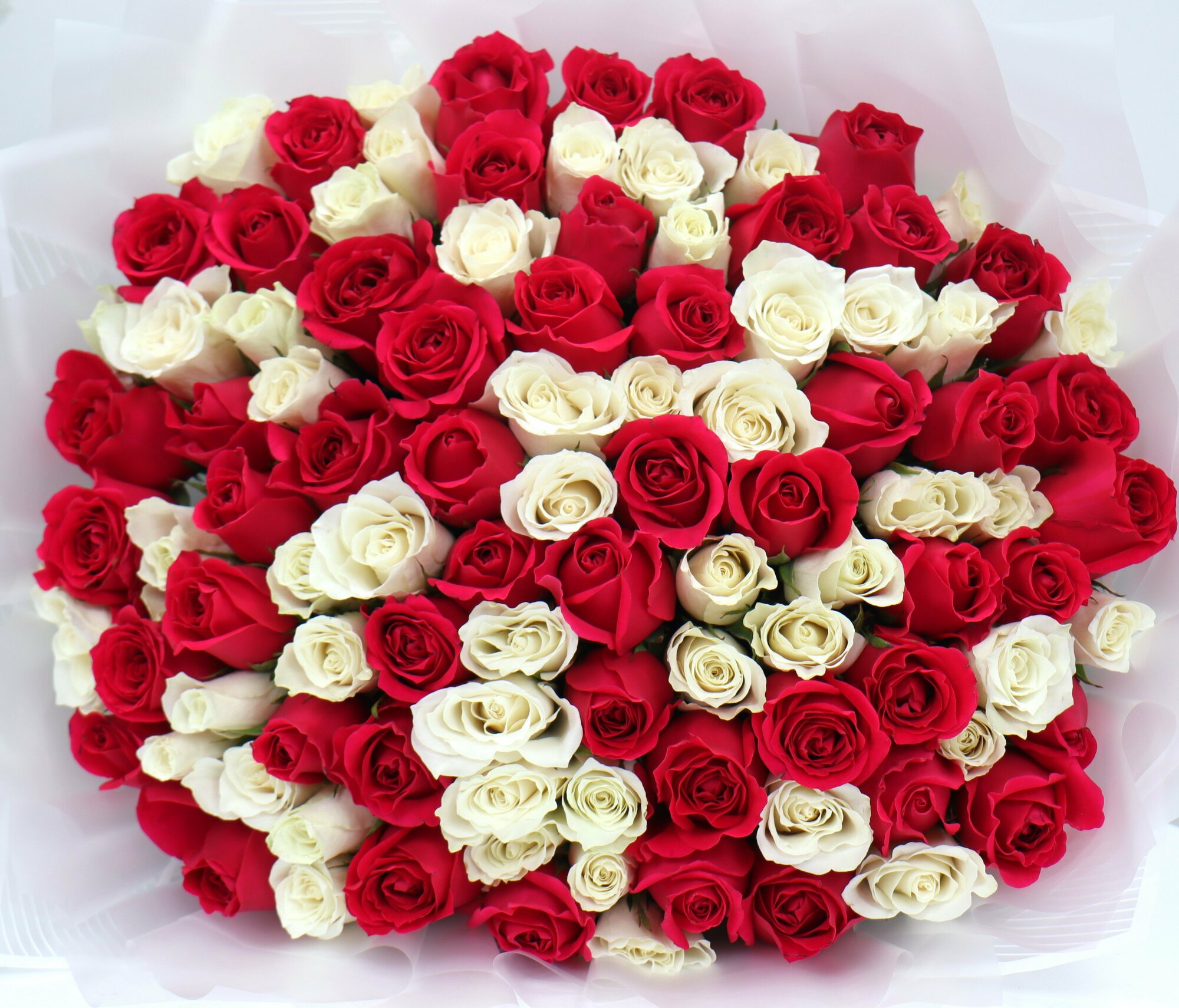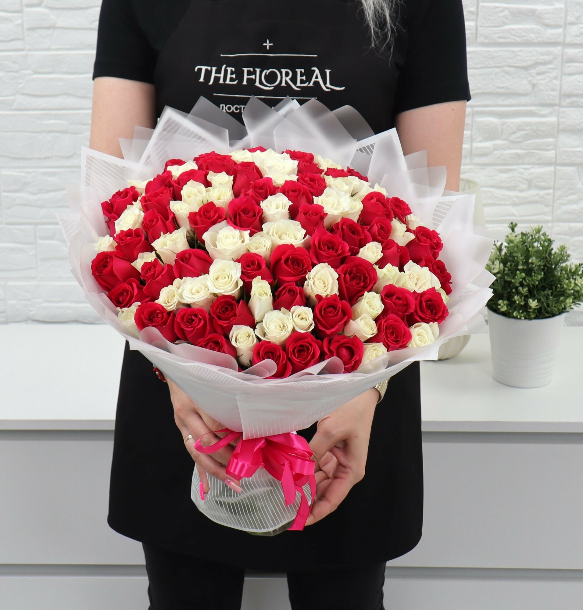 101 белая и малиновая роза 40см интересное: