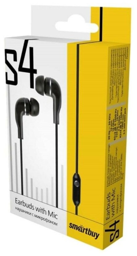 Наушники-вкладыши с микрофоном SmartBuy S4, 1,2м, черный 321318