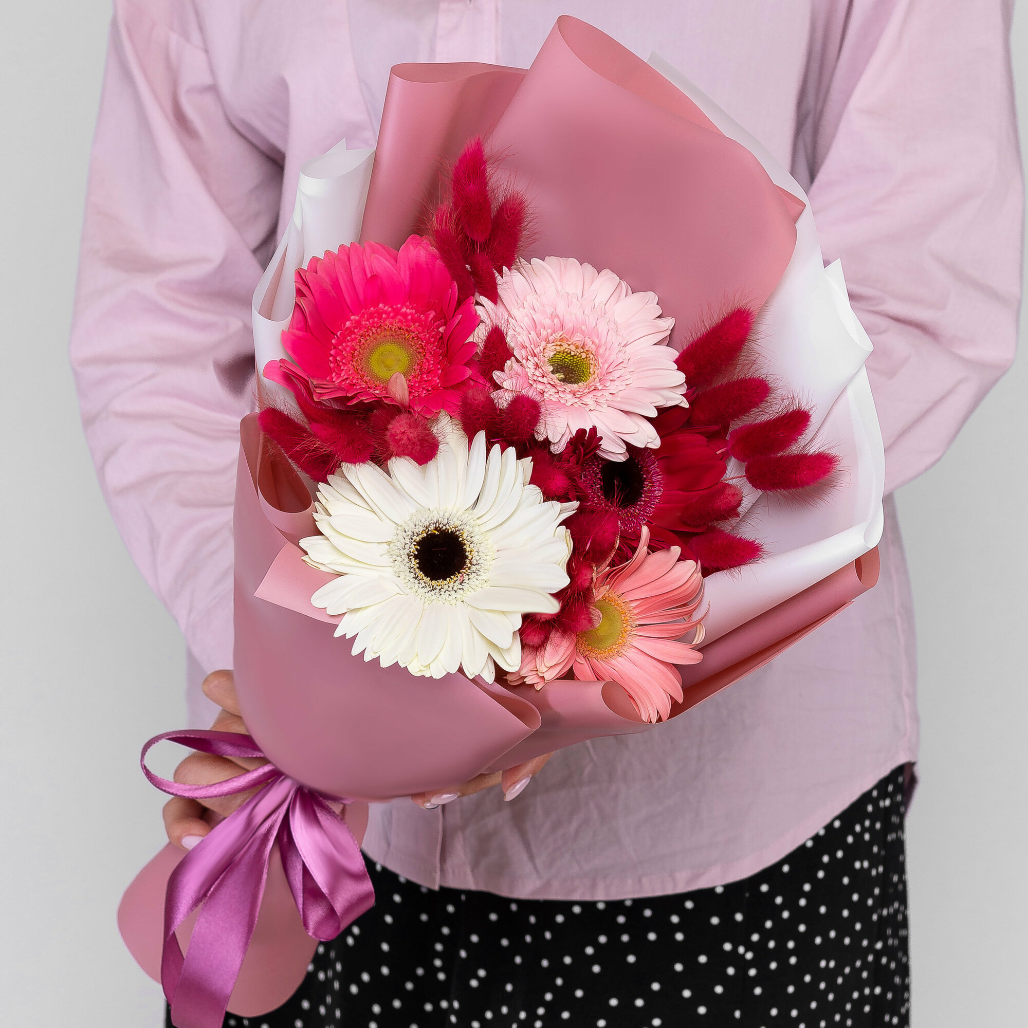 Букет "Герберы Микс и Лагурус" интересное: