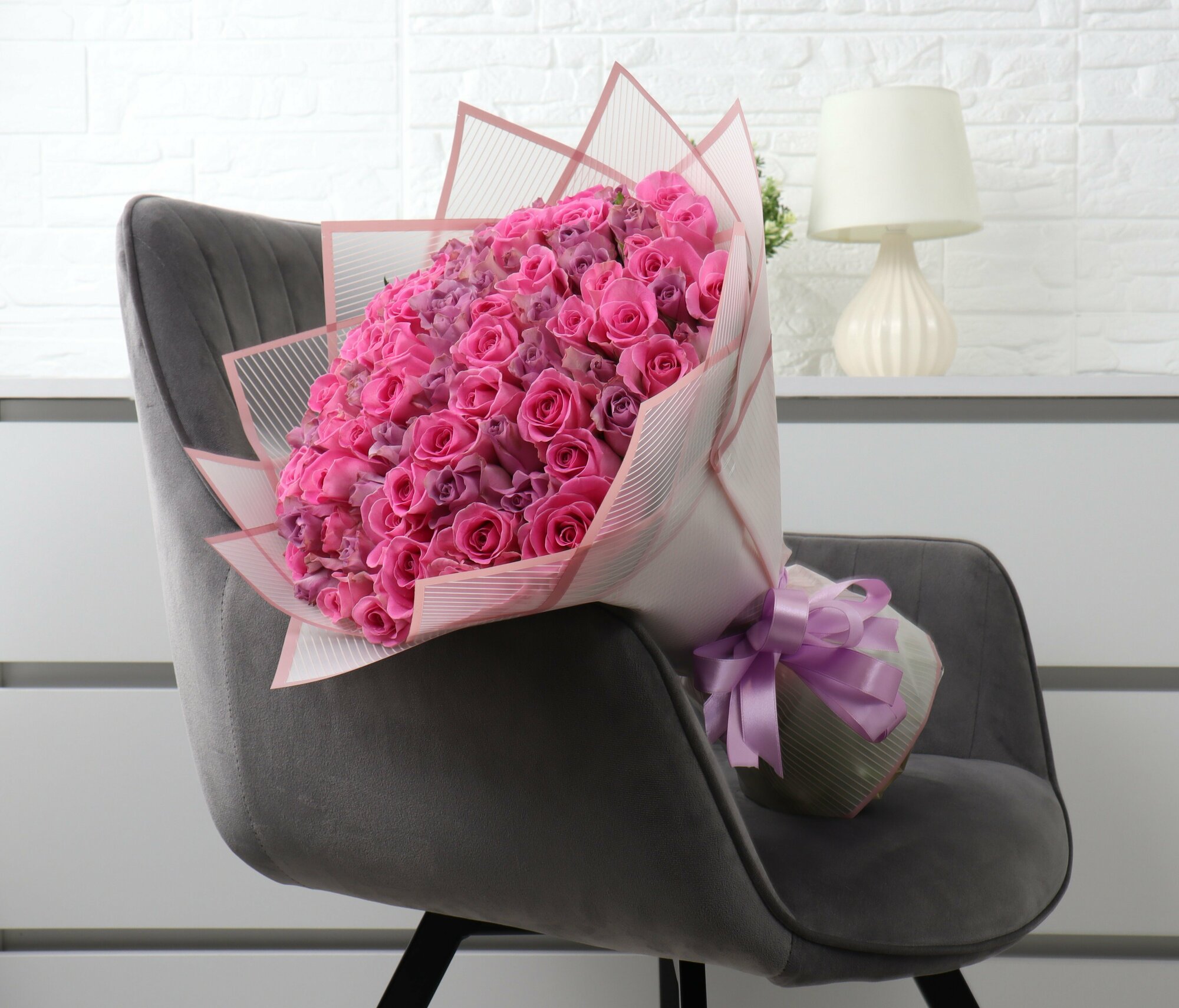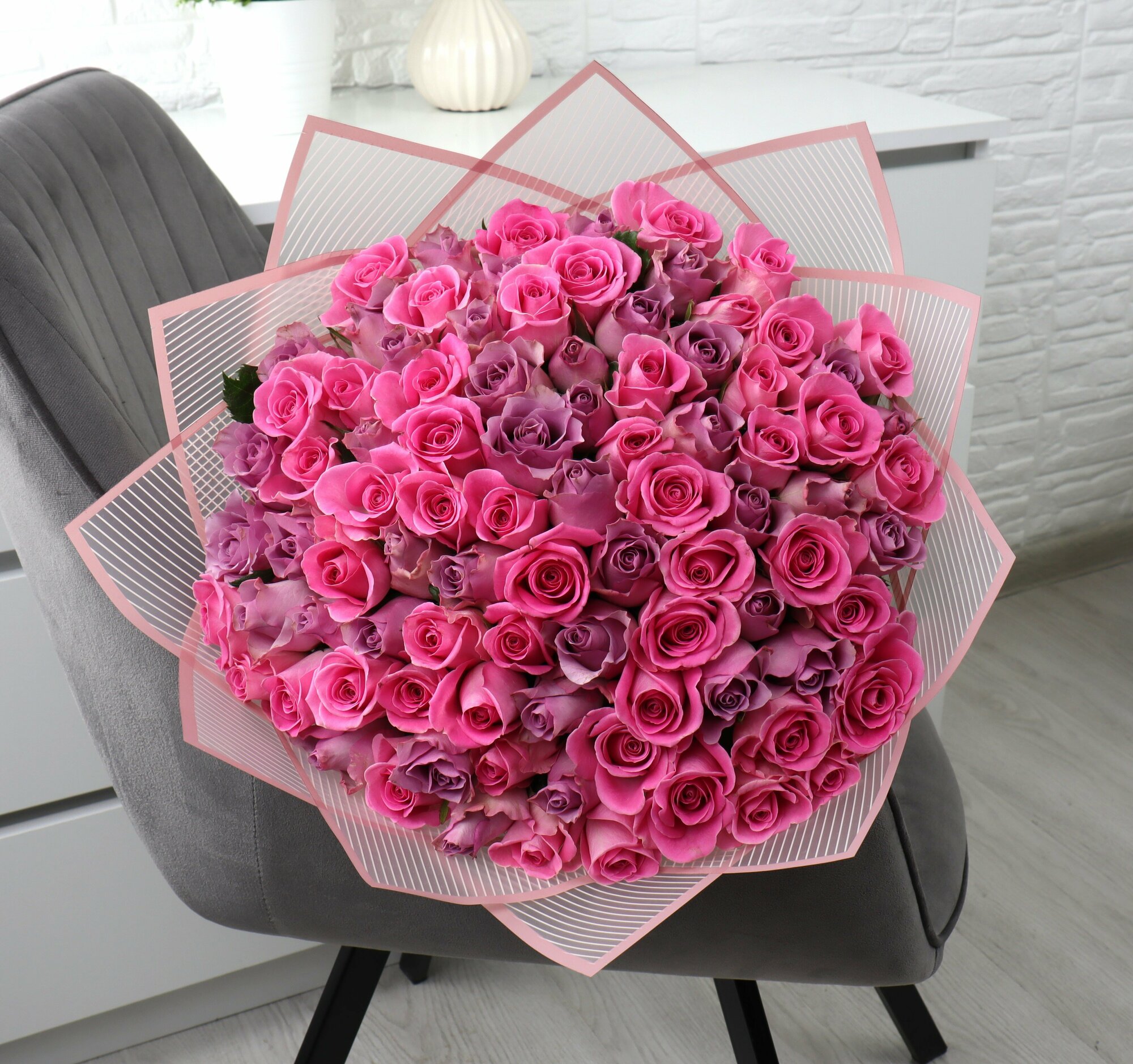 101 роза из розового и сиреневого цвета 40см интересное: