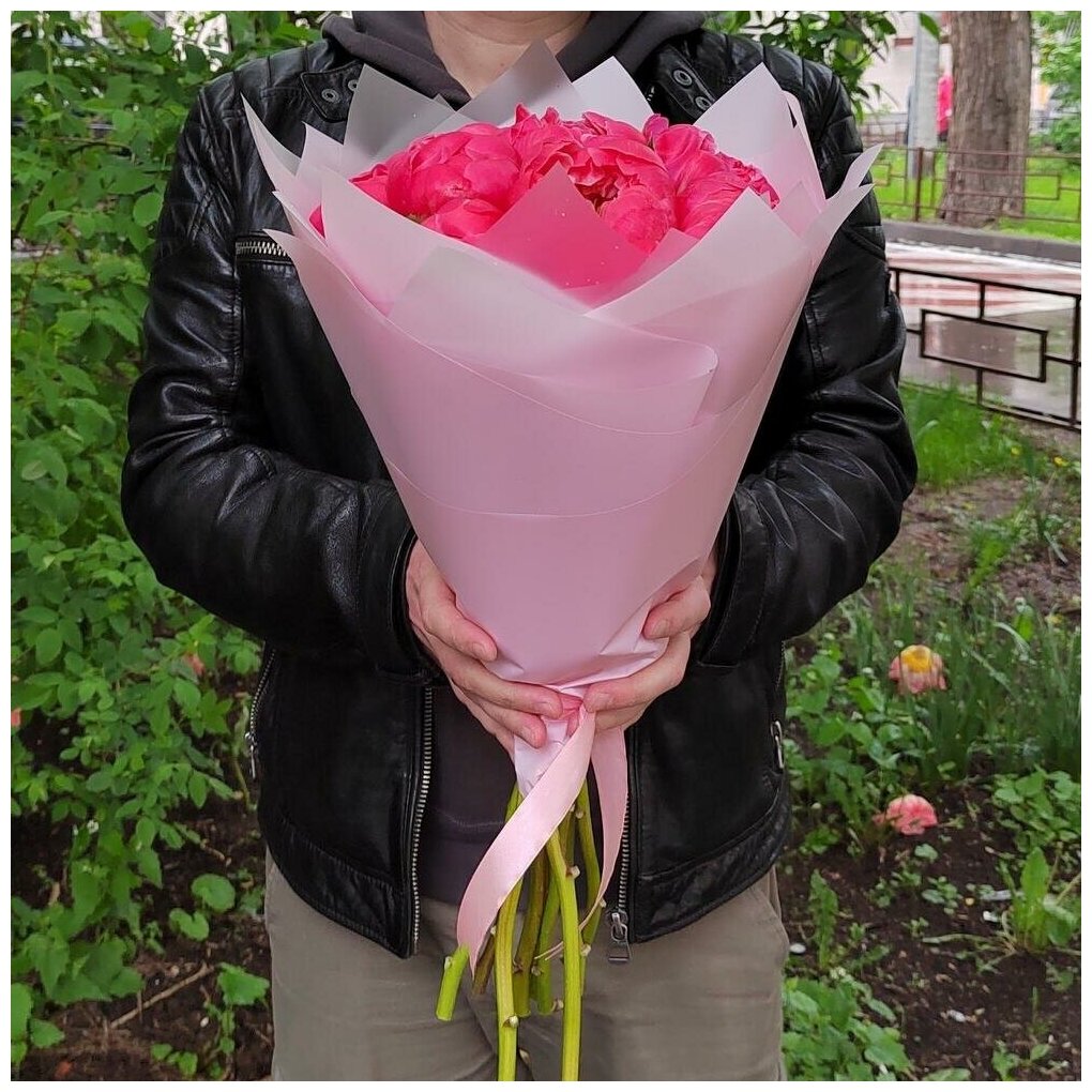 Букет живых цветов из пионов, цвет красный, 7 шт, коралловые пионы арт 215