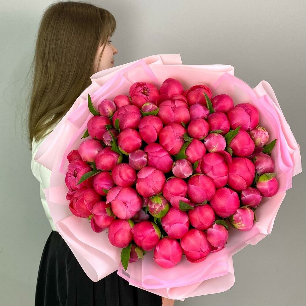 СохранитьБольшой яркий букет живых цветов из пионов, цвет красный, бордовый, 51 шт, коралловые пионы арт 309 интересное: