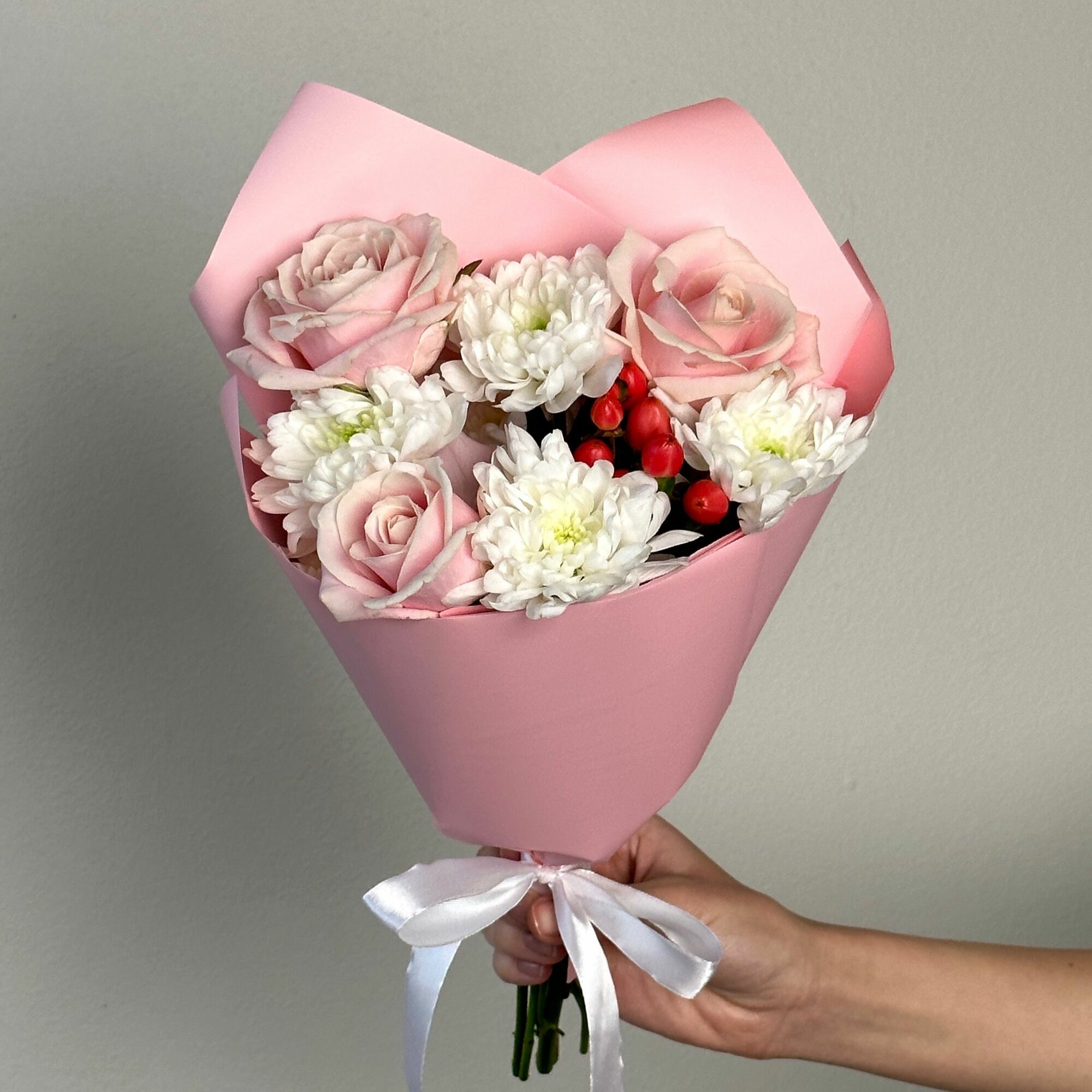 Купить Цветы живые букет из роз и хризантемы Сияние любви