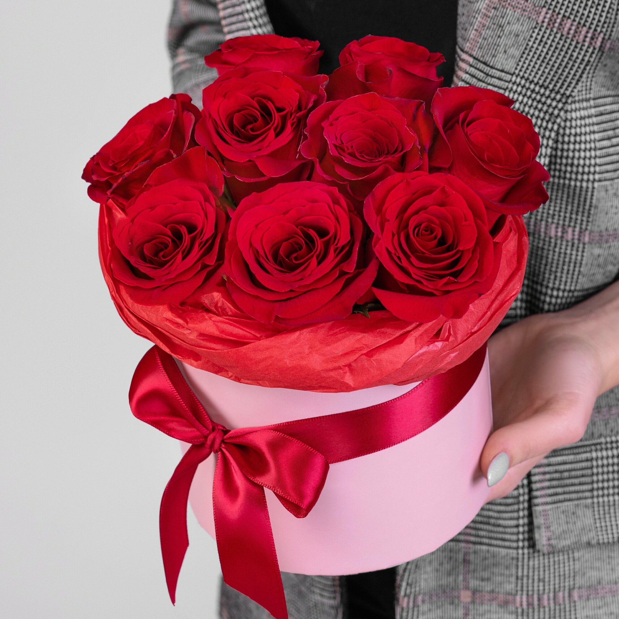 9 Красных Роз в коробке интересное: