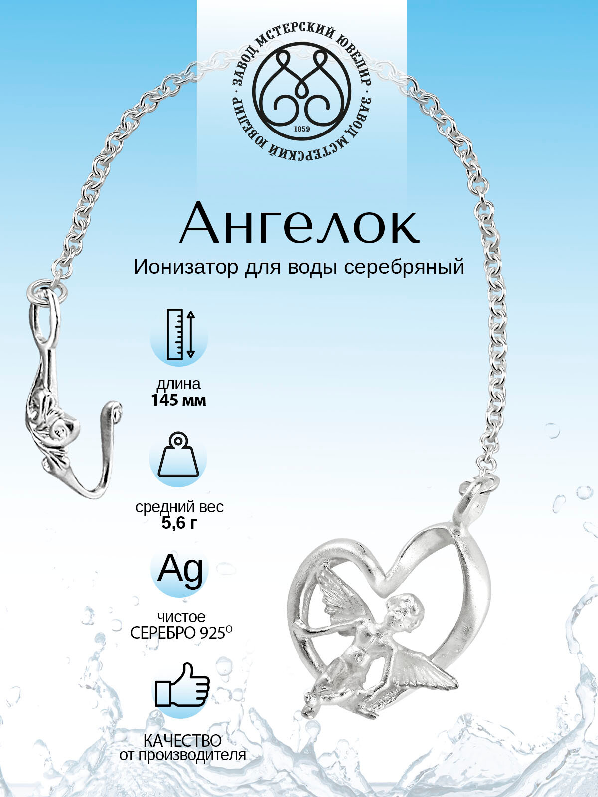 Ниже Вы можете прочитать отзывы на Серебряный ионизатор для воды №2 "Ангелочек" от Мстерский ювелир, ознакомится с подробными характеристиками, посмотреть интересные обзоры и фотографии на Серебряный ионизатор для воды №2 "Ангелочек" от Мстерский ювелир.