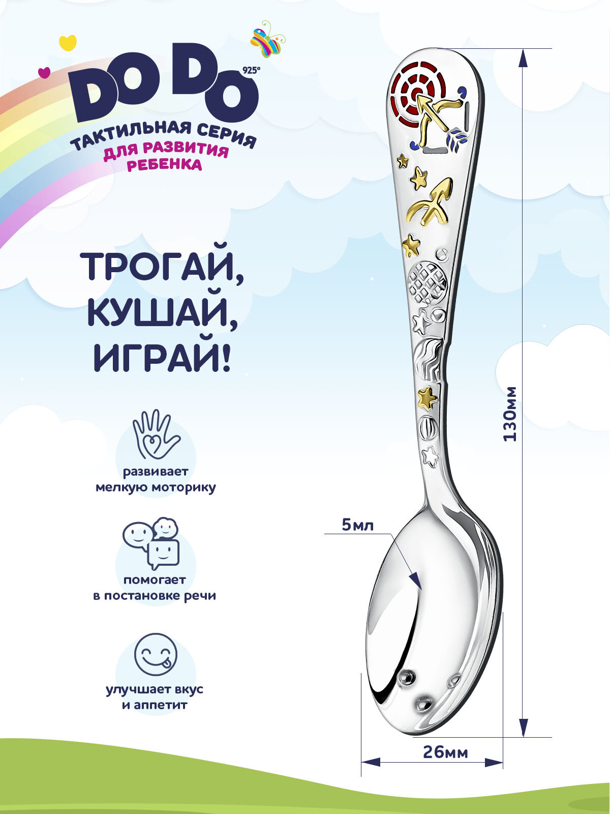 Серебряная детская ложка АргентА Сердце с цветами DoDo с футляром
