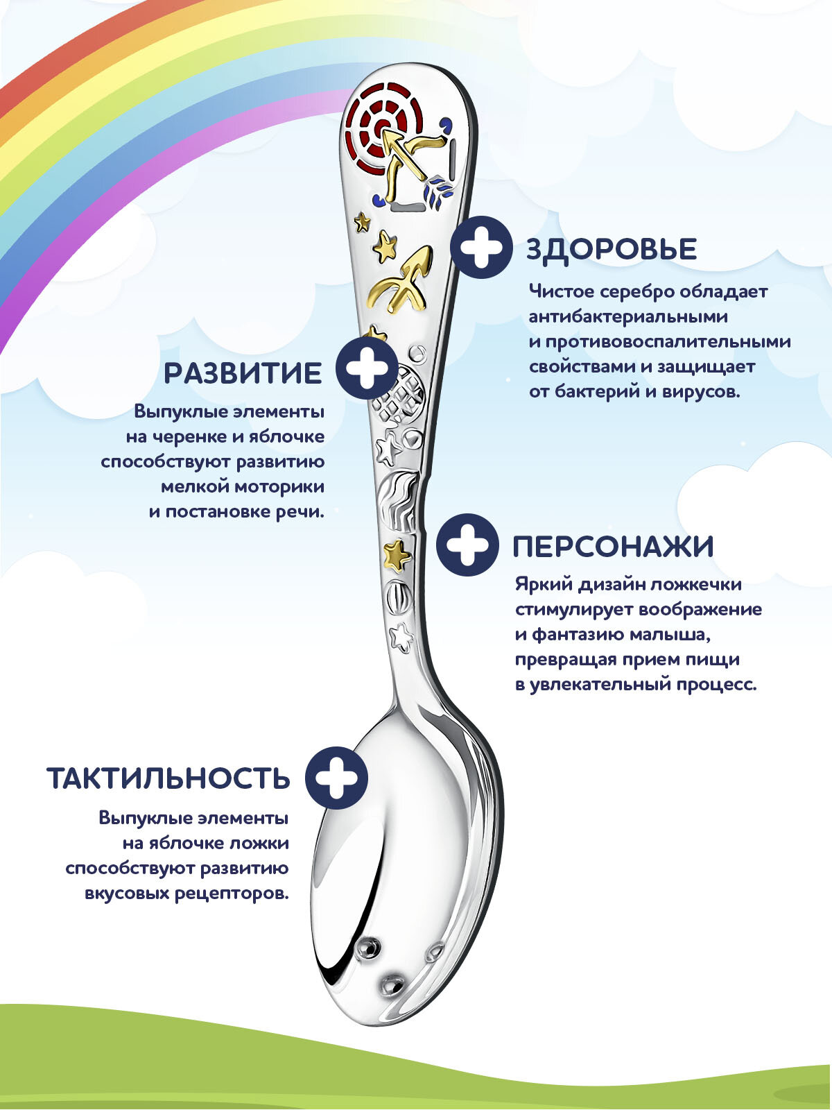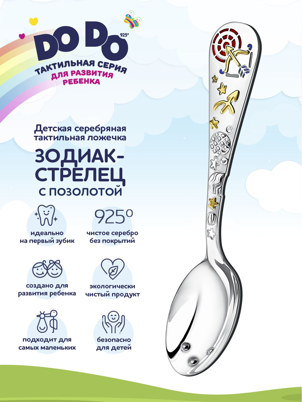 Ложка детская серебряная для кормления "Зодиак-Стрелец" с позолотой с эмалью в футляре интересное: