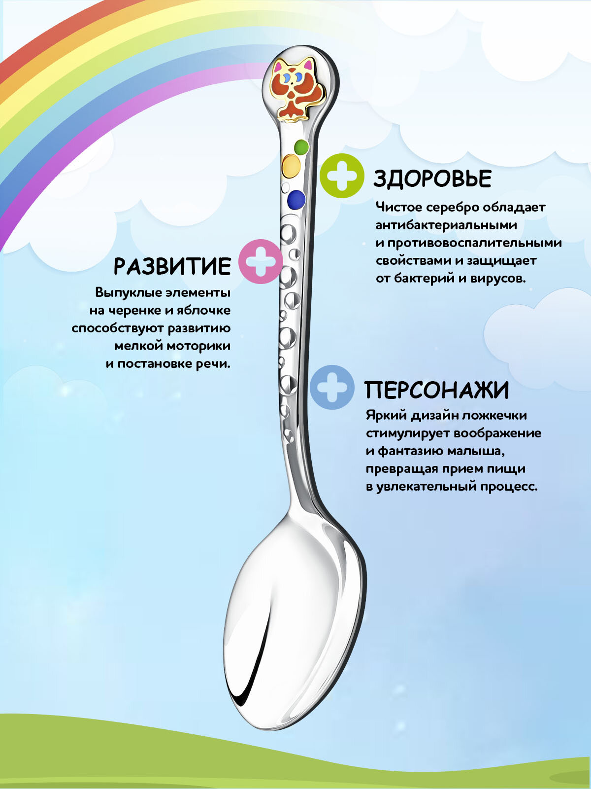 Ложка детская серебряная для кормления "Котенок" с позолотой с рыжей эмалью в футляре интересное: