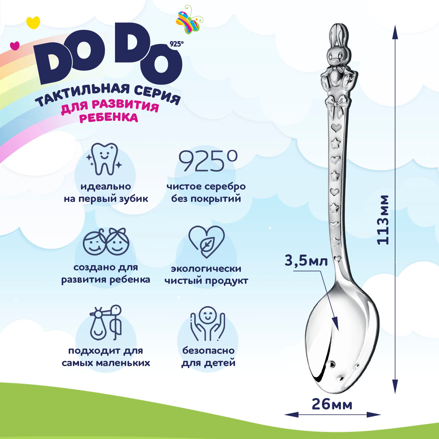 Серебряная детская ложка АргентА Сердце с цветами DoDo с футляром